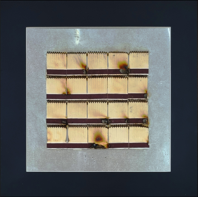 AUBERTIN BERNARD Francia 1934 - Germania 2015 "Senza titolo" Applicazione di fiammiferi combusti su alluminio, cm 30x30 del 2009. Opera firmata e datata al retro. Autentica su foto a cura dell'artista.