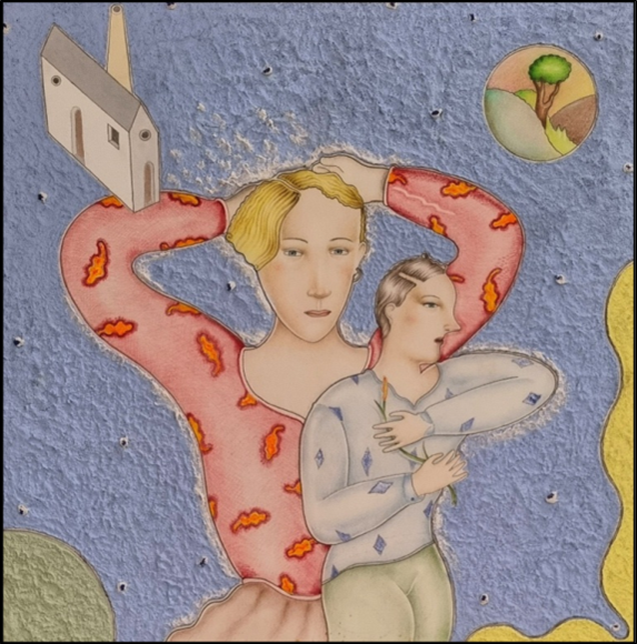 ALINARI LUCA Firenze 1943 - 2019 "Signorina voglio - voglio" Tecnica mista su tela applicata su tavola cm 60x60. Al retro intitolata. Autentica su foto a cura del maestro. Opera in mostra presso la Galleria d'Arte Genus, come da catalogo a corredo, recante foto dell'opera in copertina. Depliant di invito alla mostra.