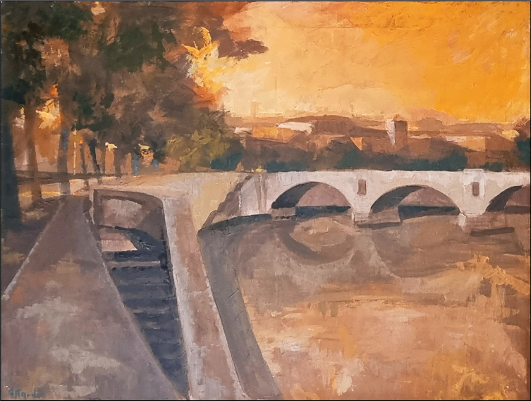 ATTARDI UGO Sori 1923 - Roma 2006 "Ponte sul Tevere" Olio su tela cm 100x75 degli anni '60. Firmato sul fronte in basso a sinistra. Opera archiviata e pubblicata sul catalogo generale dell'artista, a pag. 121.
