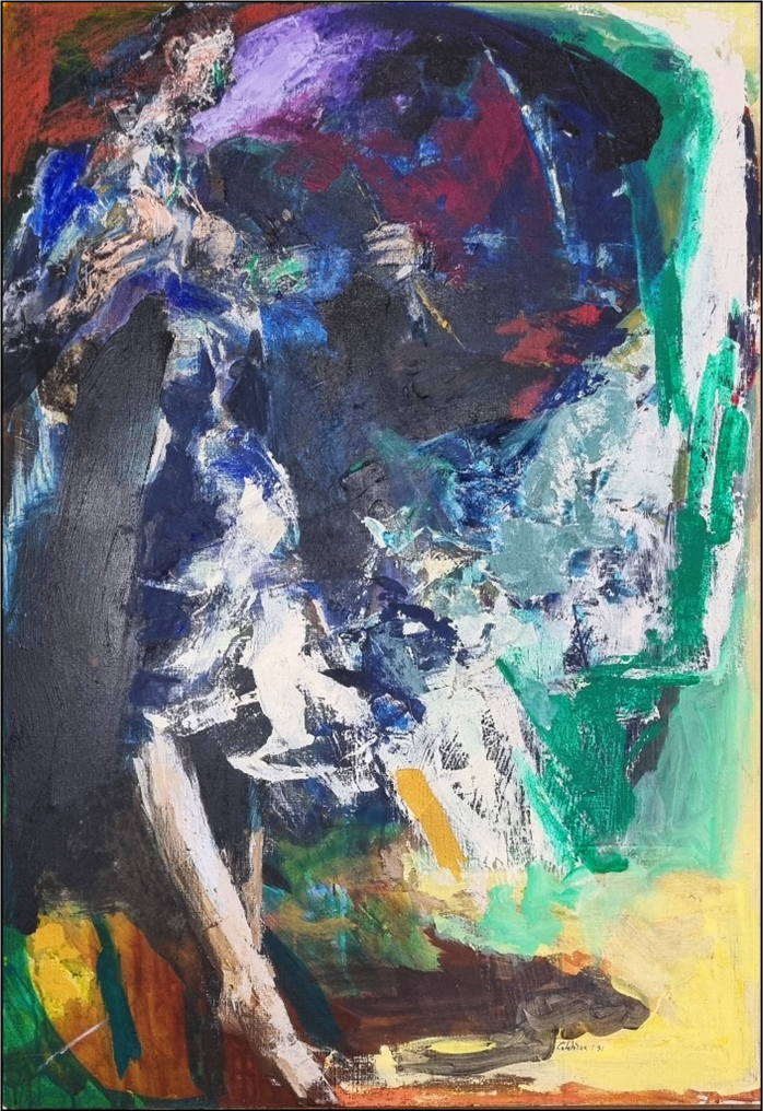 CALABRIA ENNIO Tripoli 1937 "Studio per figura" Olio su tela cm 70x100 del 1991. Firmato e datato sul fronte in basso a destra. Sul retro firmato, datato ed intitolato. Autentica ed archiviazione su foto a cura dell'artista.