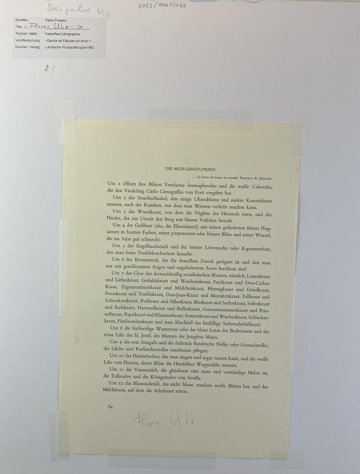 Da Pablo Picasso SENZA TITOLO fotolitografia su carta, cm 35x24