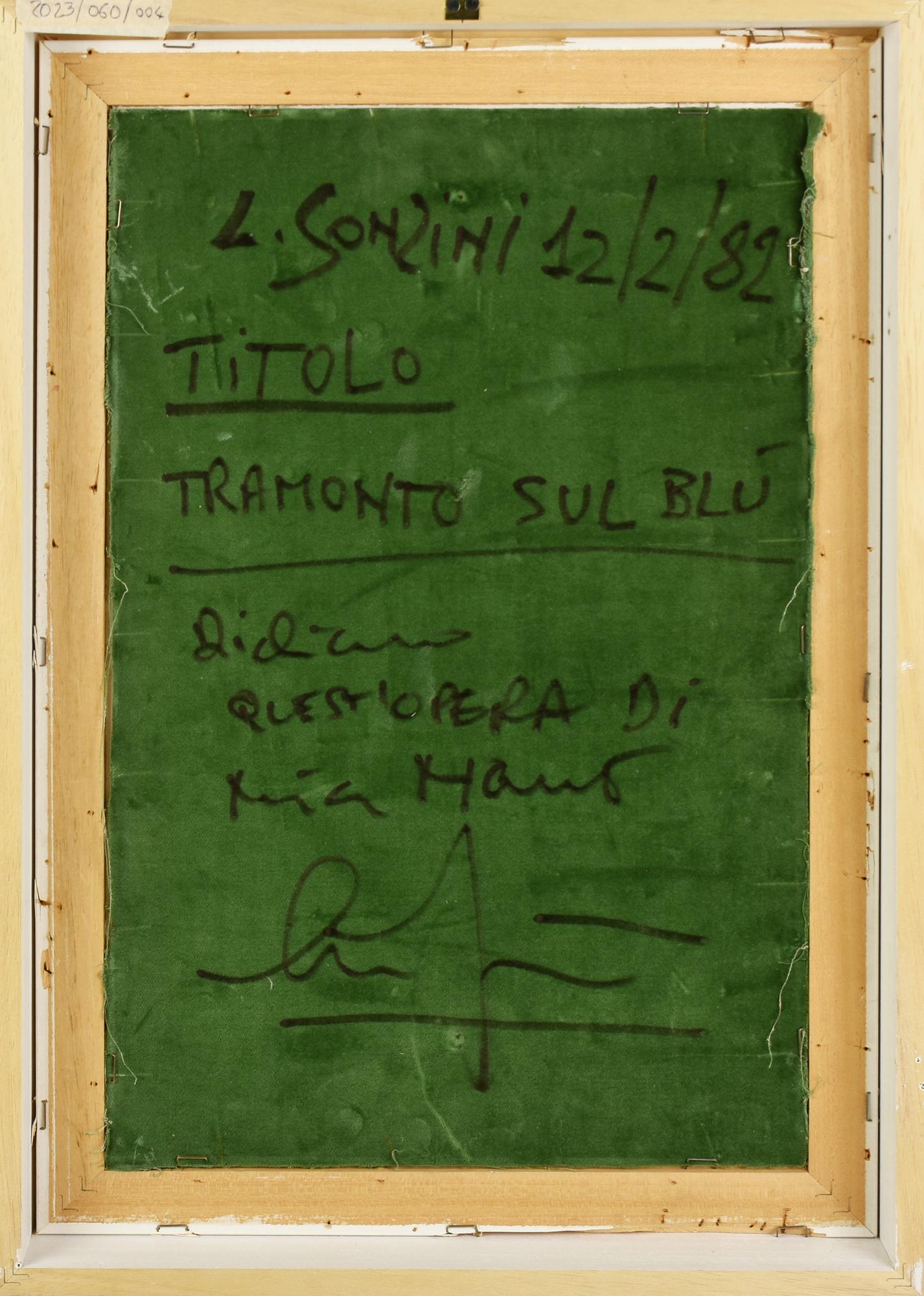 Luigi Sonzini TRAMONTO SUL BLU, 1982 tecnica mista su faesite, cm 47x29 sul...