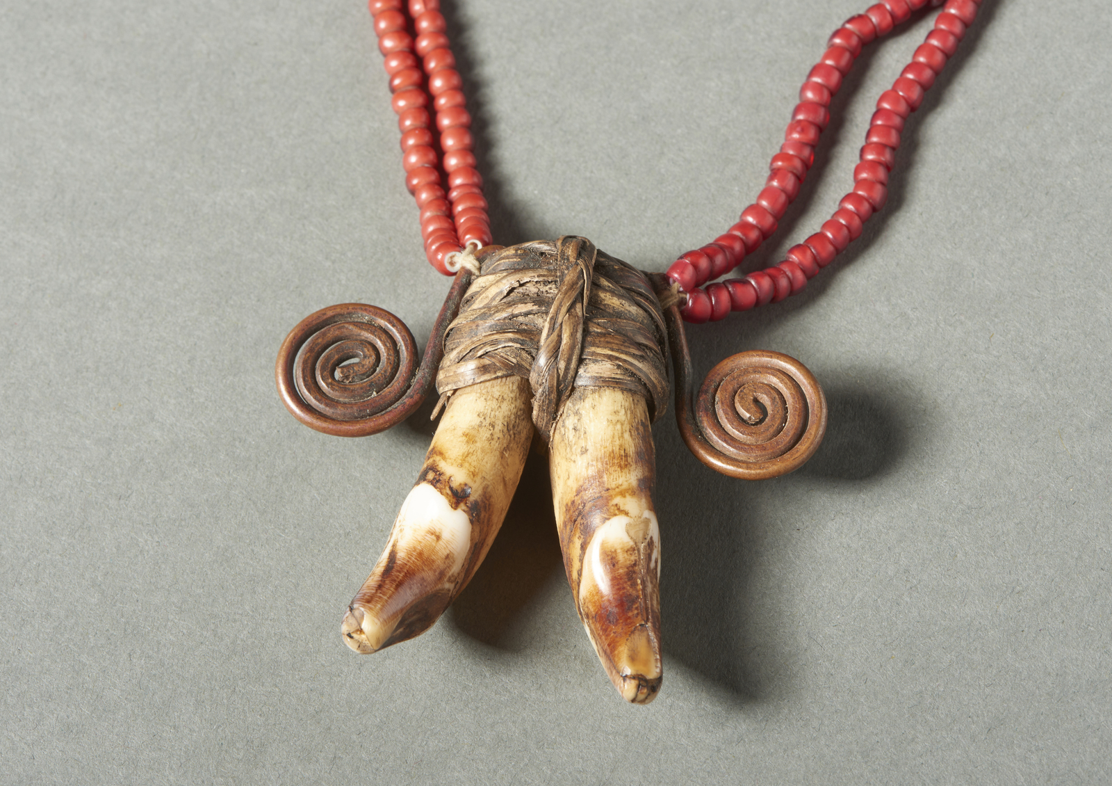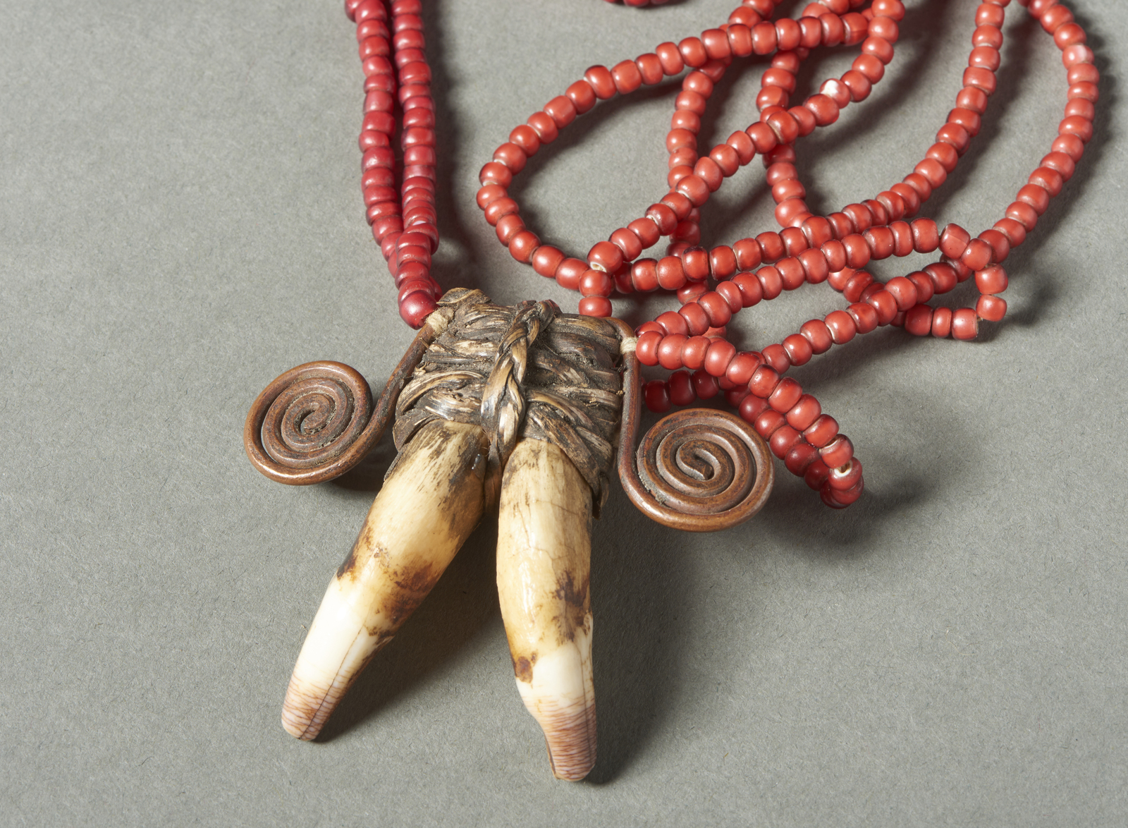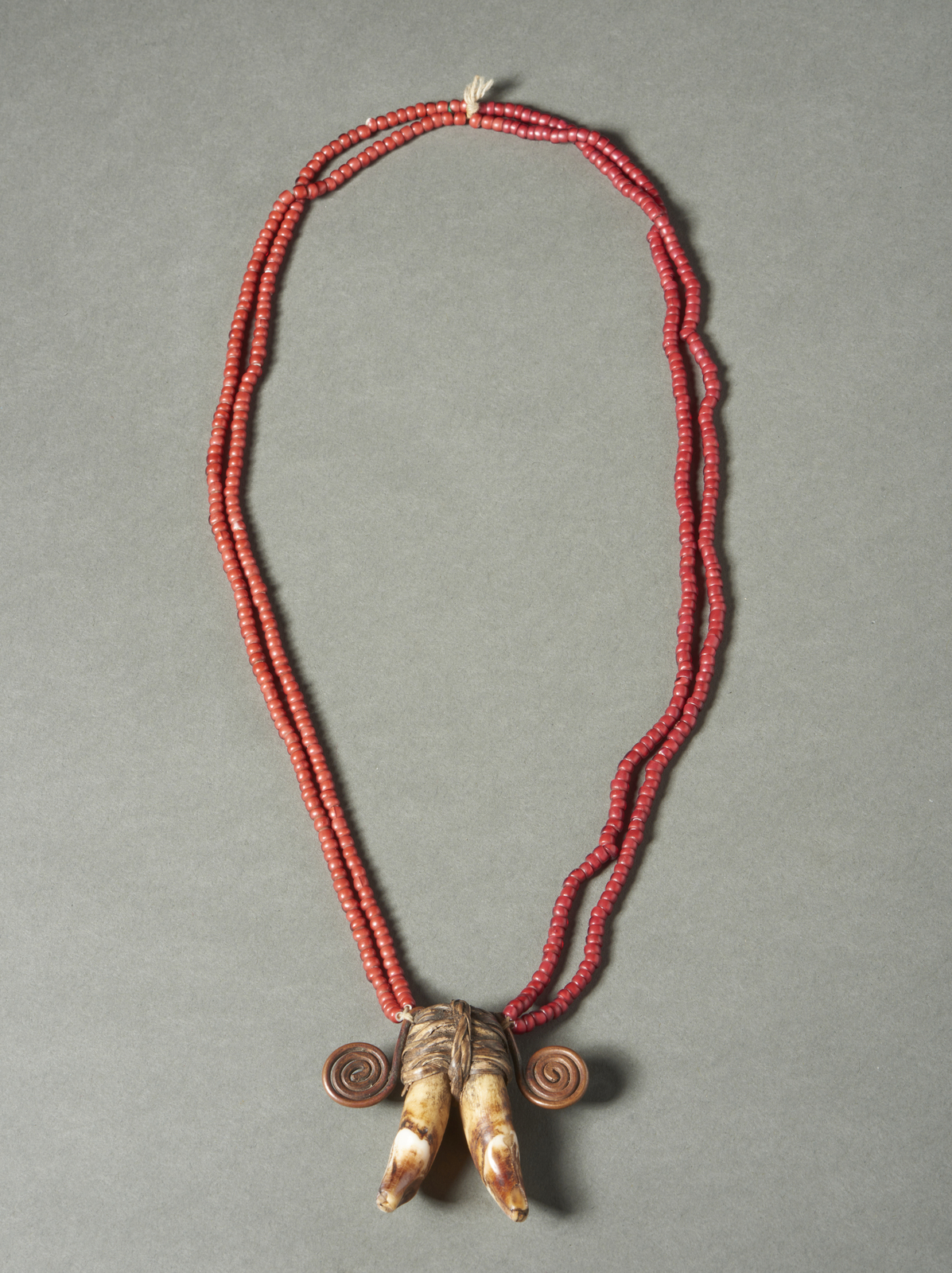 Arte Indiana - Naga, India. Collana con denti, rame, perline e fibre vegetali. .