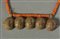 Pasta vitrea e pendente a cinque teste in lega di rame, fibre naturali. . . Cm 14,20 x 29,00 x 2,70.