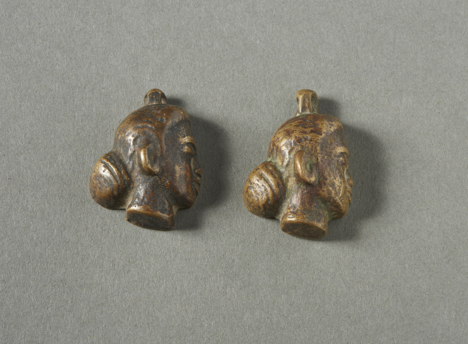 Lotto 46 | Arte Indiana - India. Due pendenti a forma di testa femminile in lega di rame. In patina. .