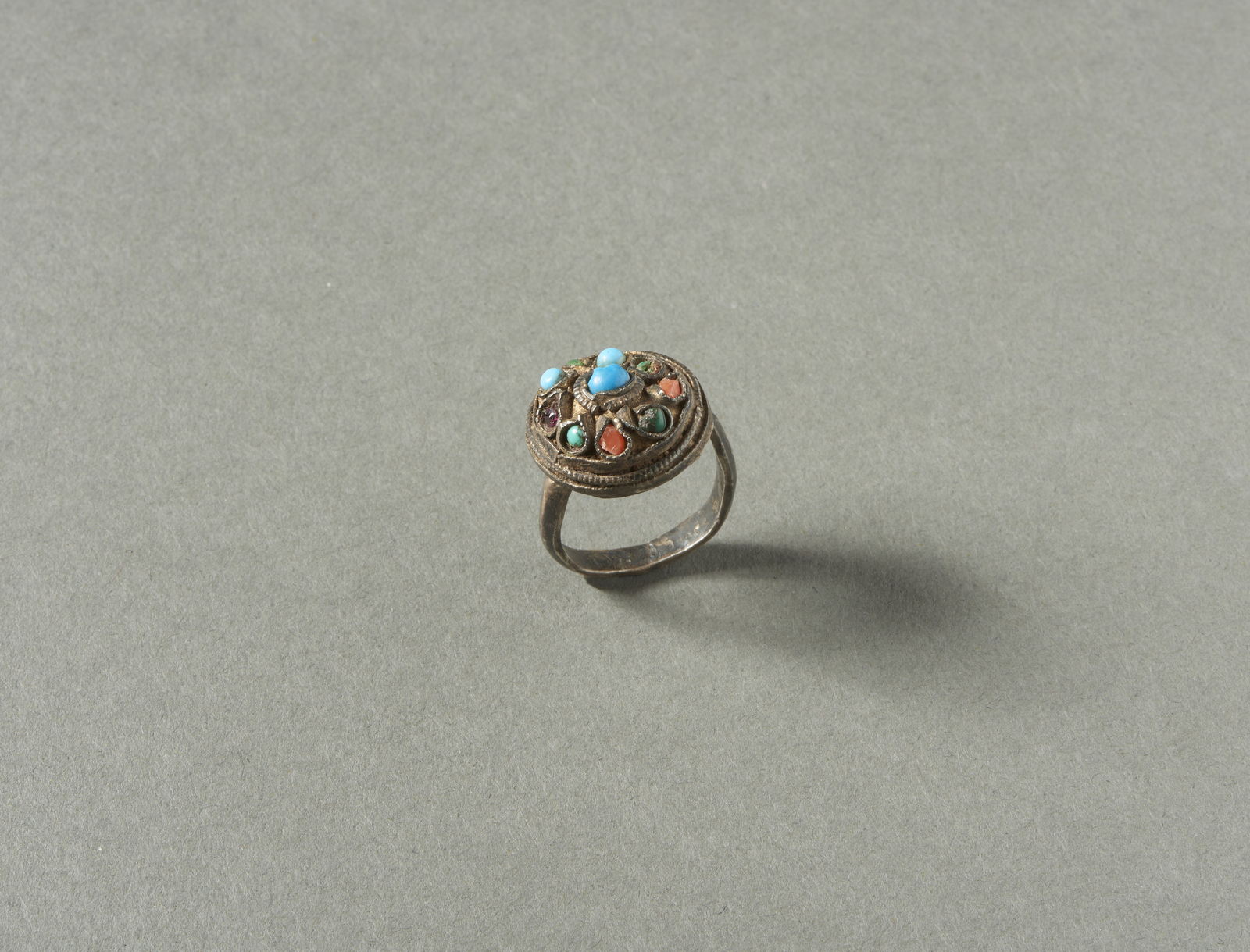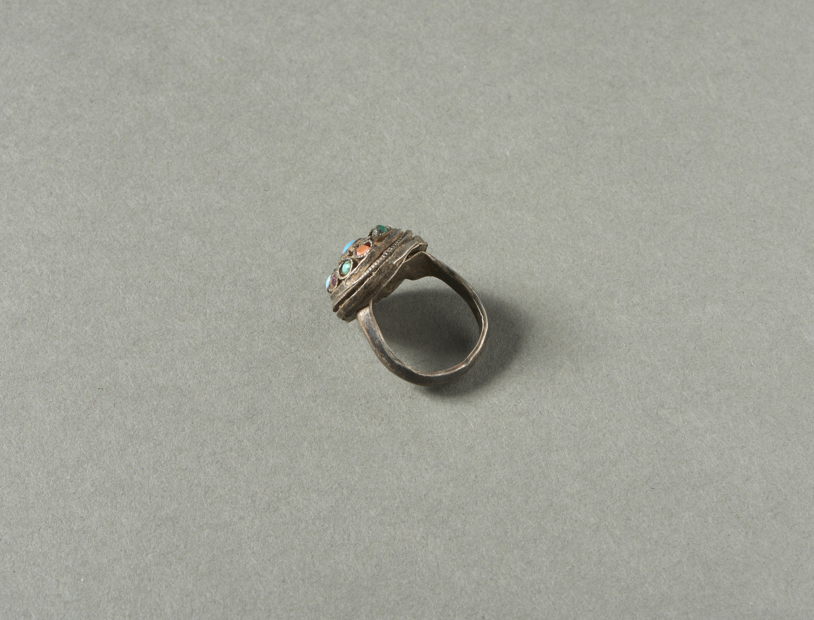 Arte Indiana - India. Anello in argento con paste vitree policrome. .