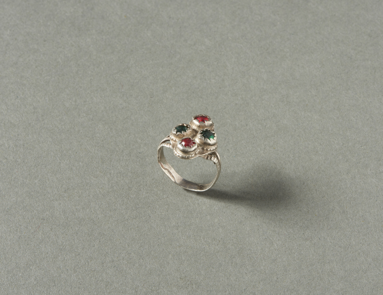 Arte Indiana - India. Anello in argento e paste vitree. Difetti e segni d'uso. .