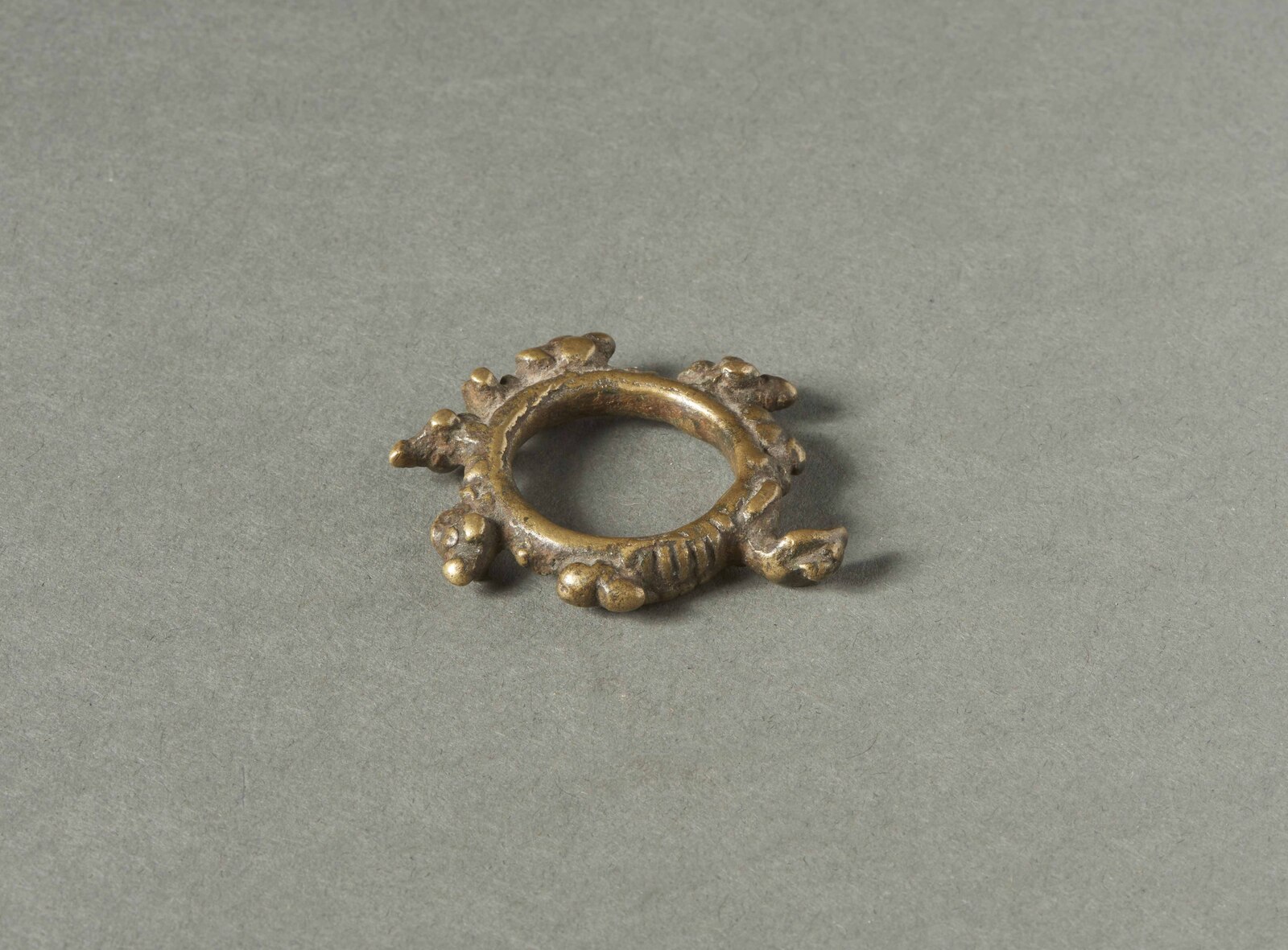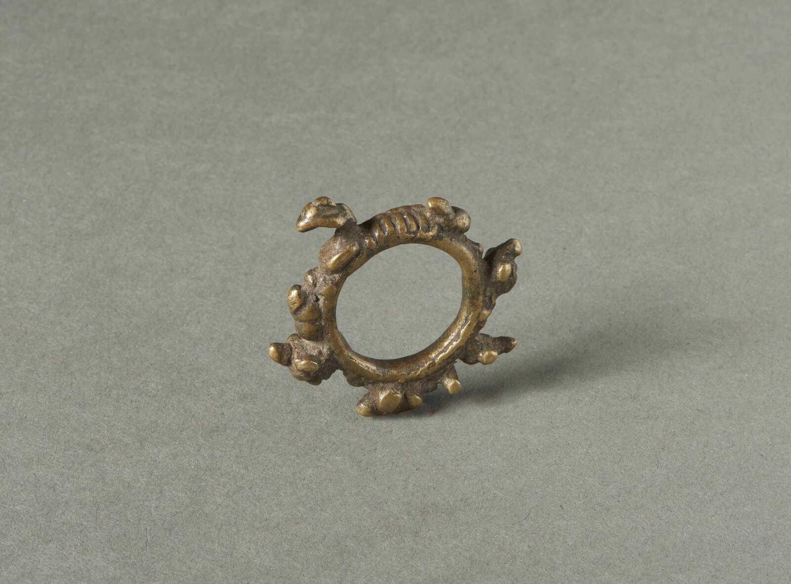 Arte Indiana - India. Anello con figure stilizzate in lega di rame. Con discreta patina. .