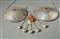 Argento, corniola e paste vitree. . . Cm 78,00. Splendido ornamento da petto indossato dalle donne del Rajasthan composto da due coppe incise a motivi floreali e geometrici e da un pendente centrale con corniola e cinque campanellini.