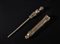 Difetti visibili e segni d'uso. . . Cm 3,00 x 26,00. Particolare pestello per betel con manico a forma di figura antropomorfa accovacciata. Il fodero risulta decorato con figure geometriche ed un coccodrillo.