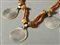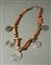 corallo, ambra, pietre verdi e 5 placche rotonde con spirali d'argento.