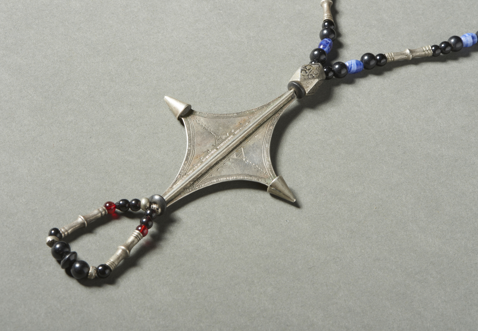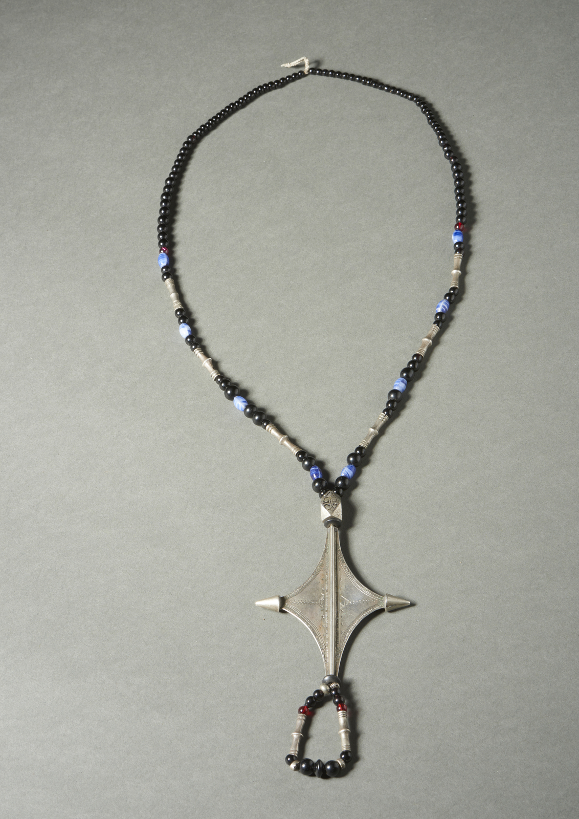 Arte africana - Tuareg, Nord Africa. Collana da matrimonio in argento e perle di vetro blu.