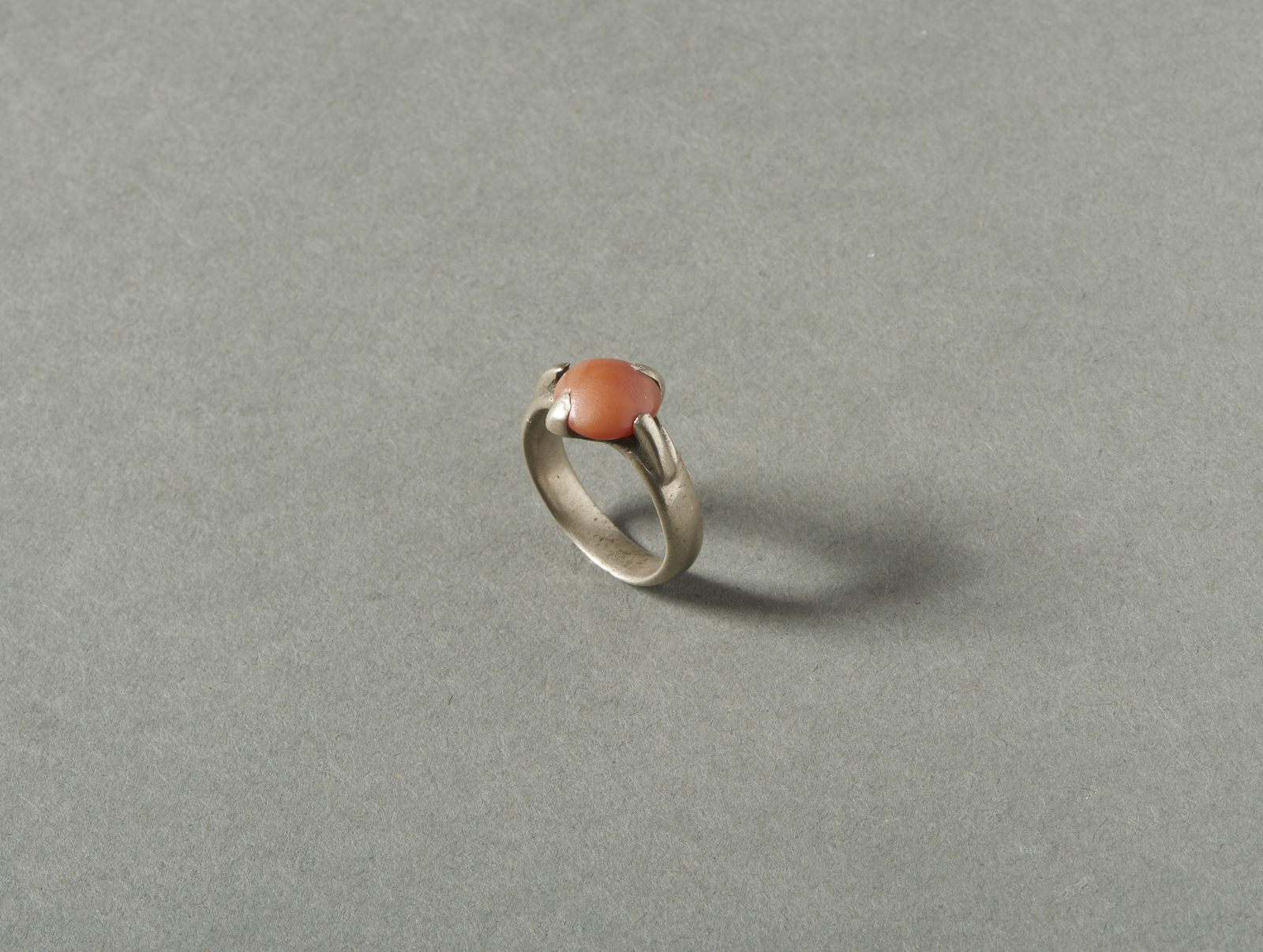 Anello da carovaniere in argento e calcedonio cabochon.