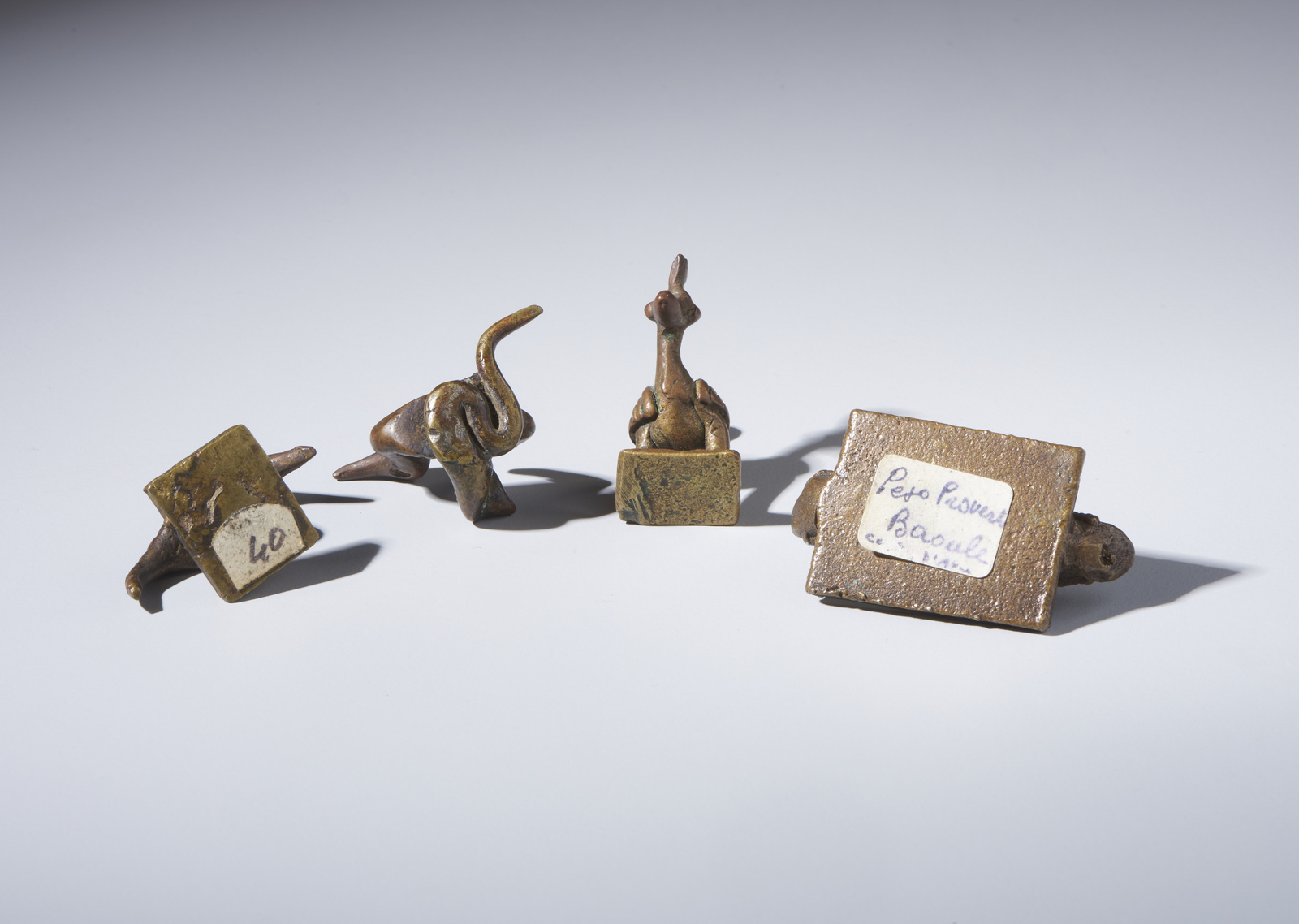 Arte africana - Akan, Costa d'Avorio. Gruppo di quattro pesi per oro in bronzo. .