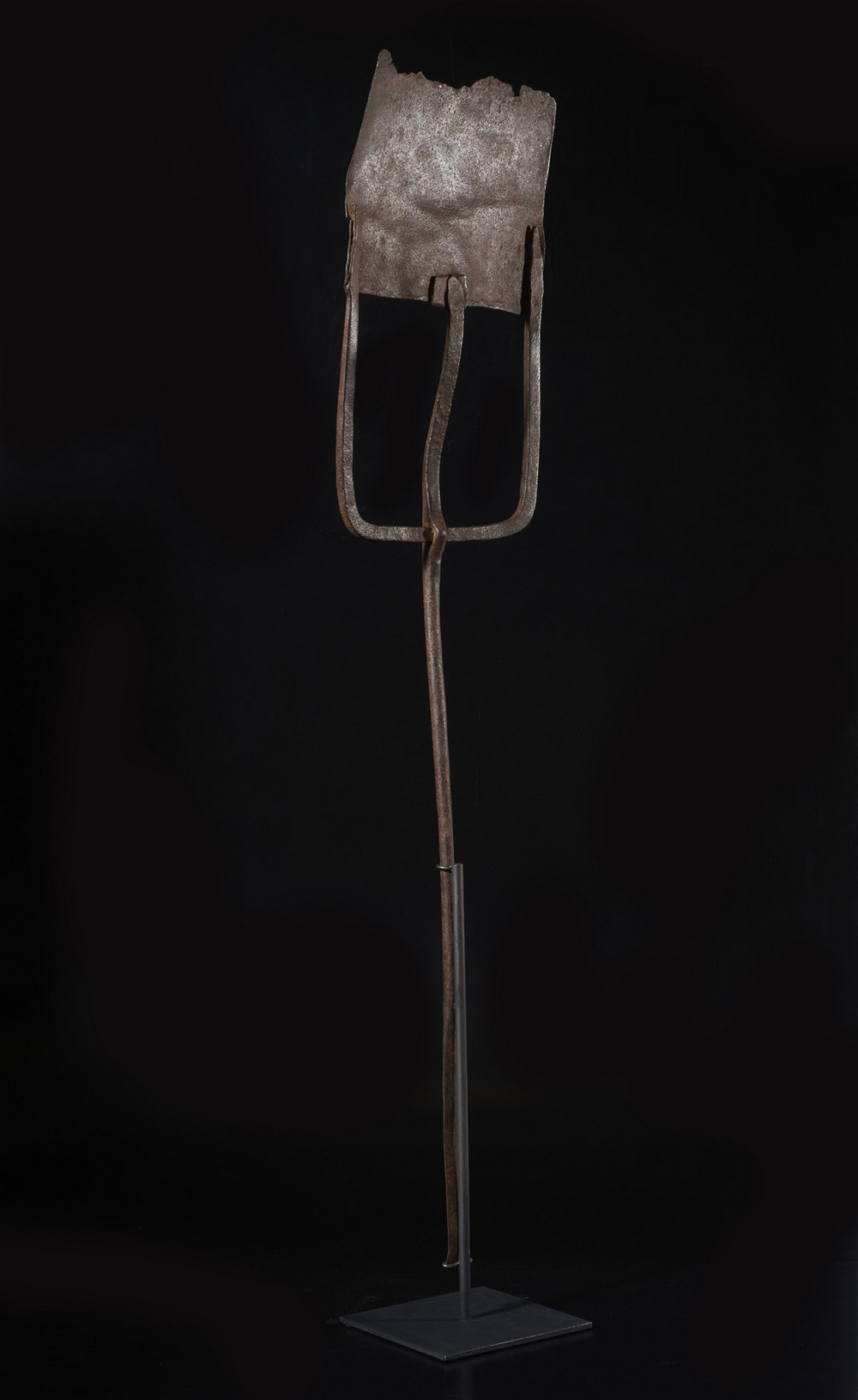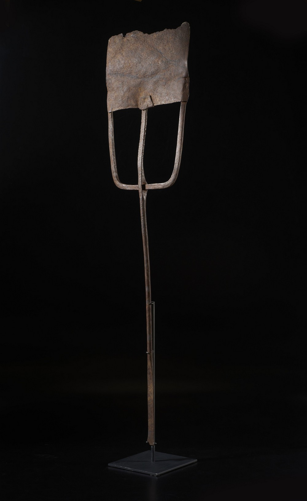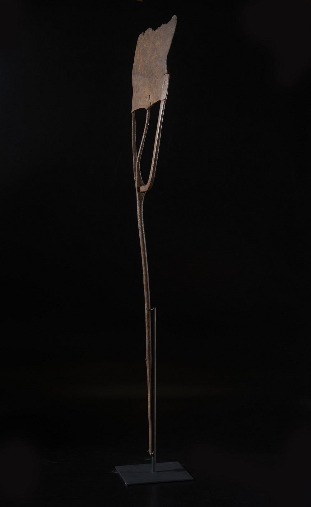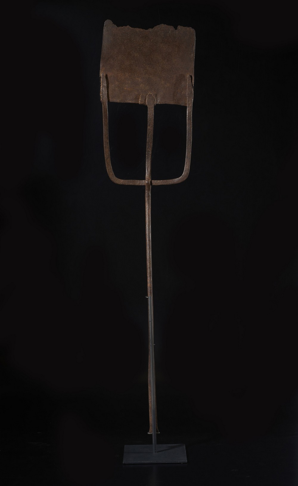 . . Cm 29,00 x 130,00 x 3,00. Grandi monete come questa, in ferro forgiato, venivano utilizzate in tutta la Nigeria centrale come pagamento per l'acquisto della sposa