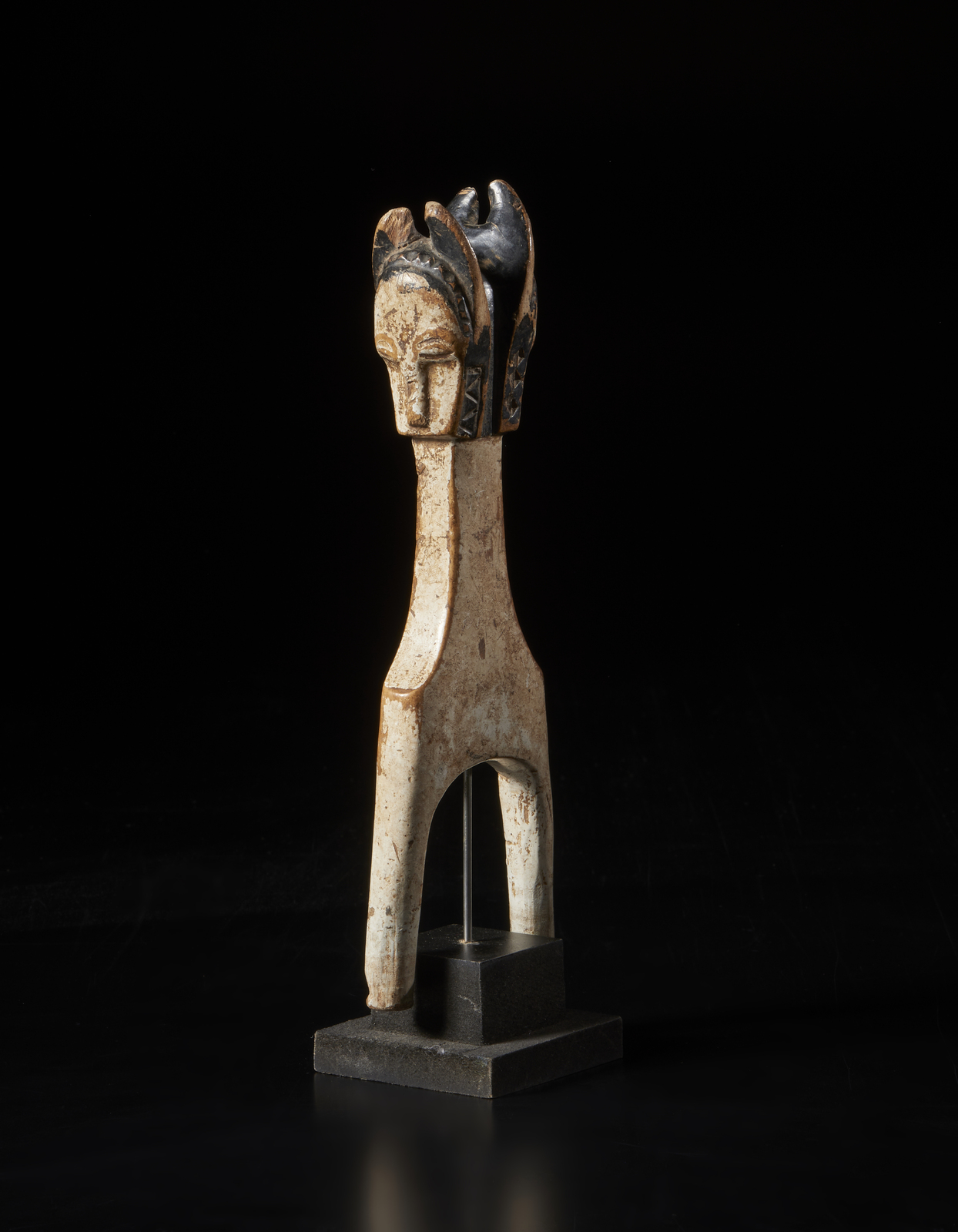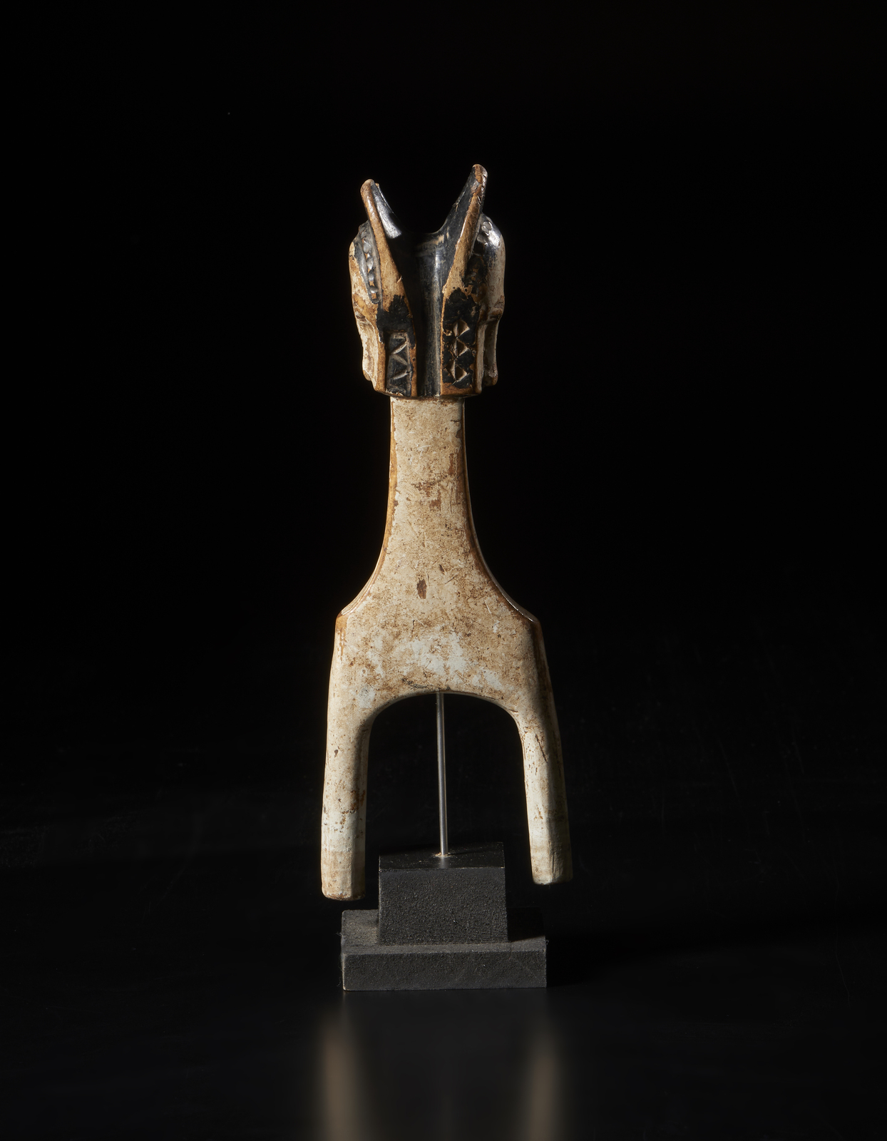 Arte africana - Baulè, Costa d'Avorio. Fionda in legno duro con doppia maschera zoomorfa. Segni d'uso. .