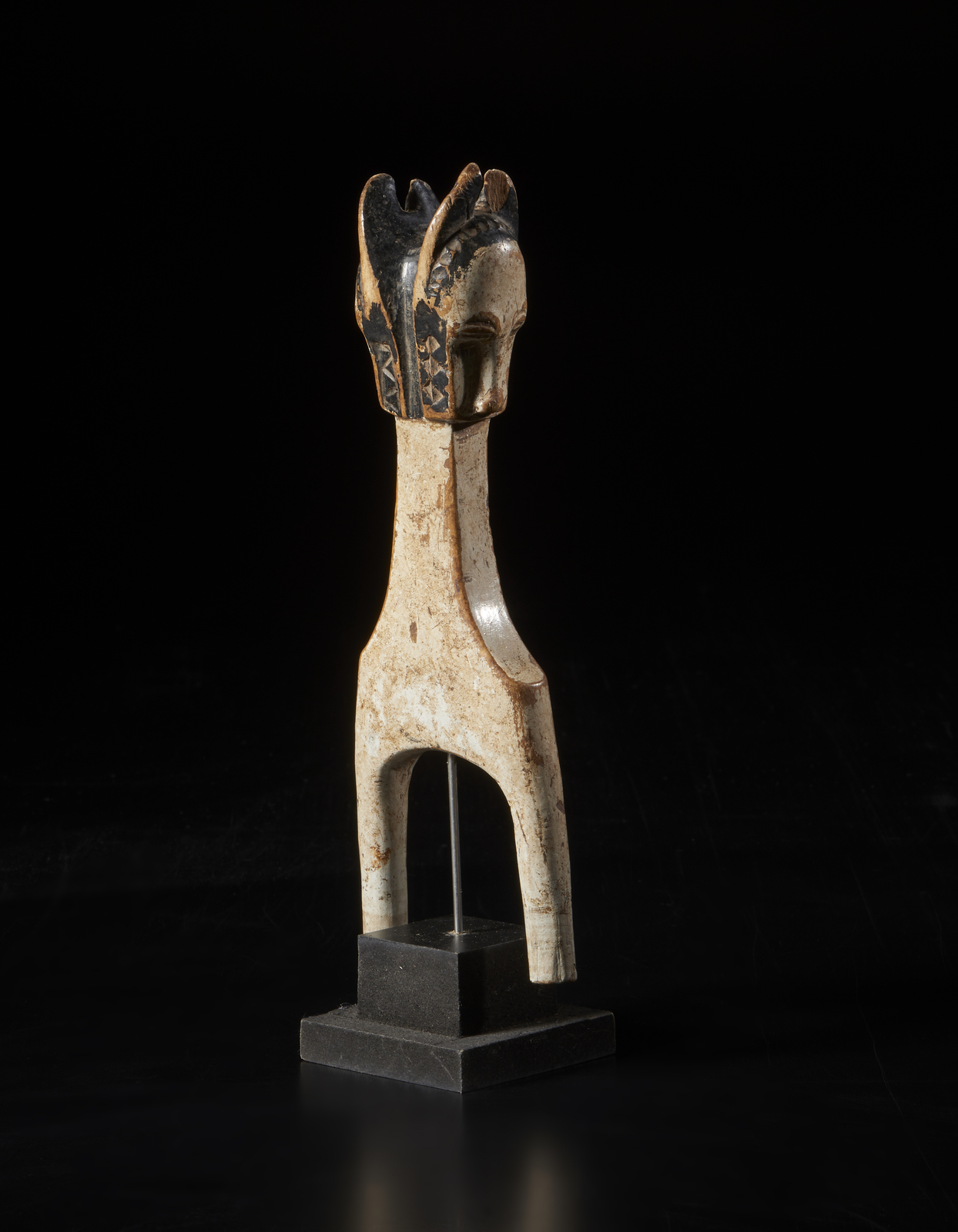 Segni d'uso. . . Cm 6,50 x 19,50 x 3,50. Bella fionda dall'accurato intaglio e proporzionata nelle forme, caratterizzata dalla doppia maschera del tipico Bufalo Baulè.