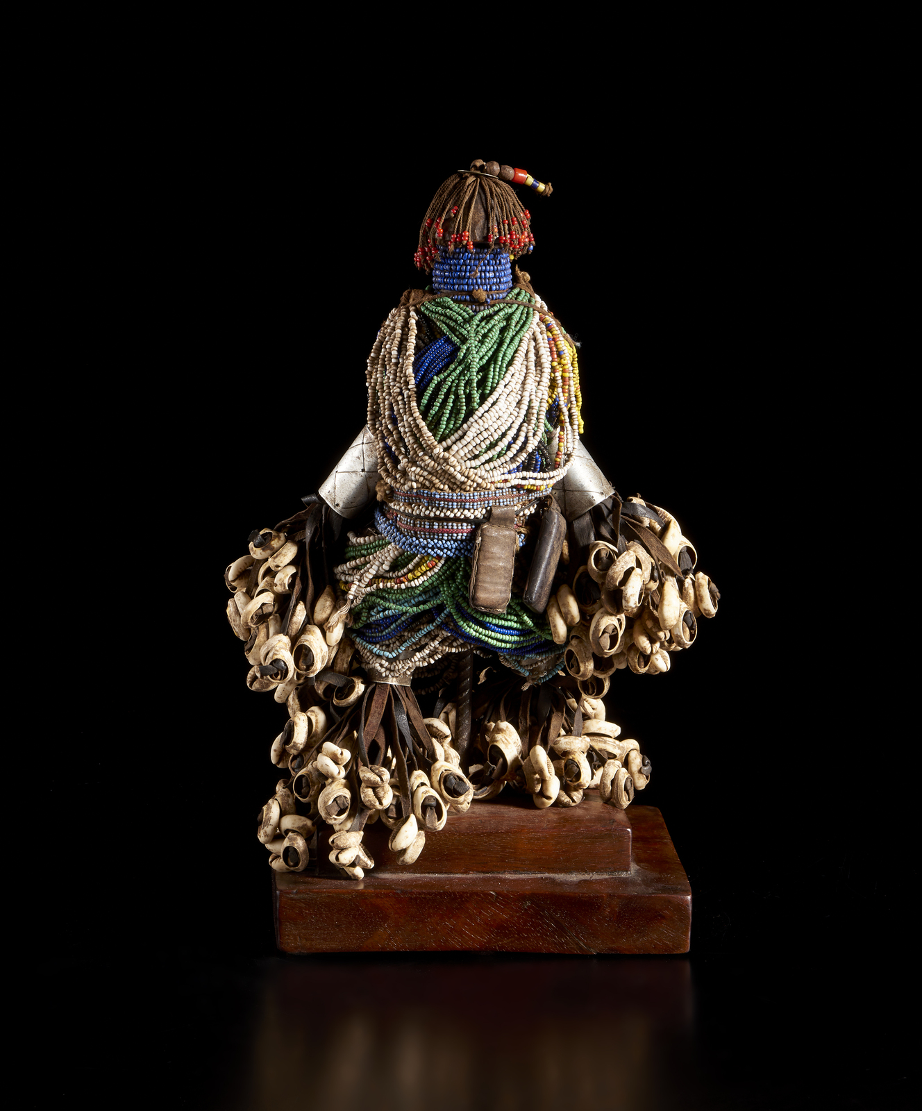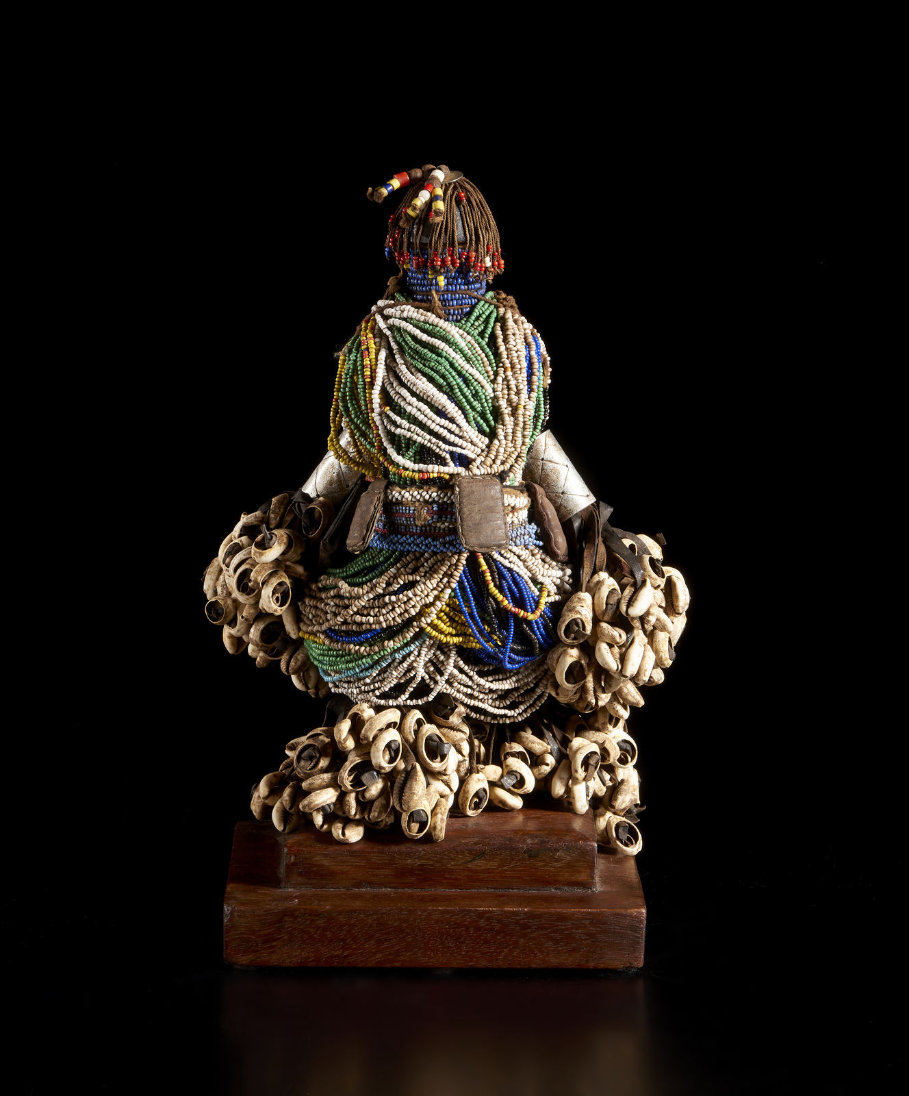 Lotto 255 | Arte africana - Namji Dowayo, Camerun. Bambola di fertilità. Legno duro, perline, conchiglie, pelle, alluminio e fibre. Segni d'uso.