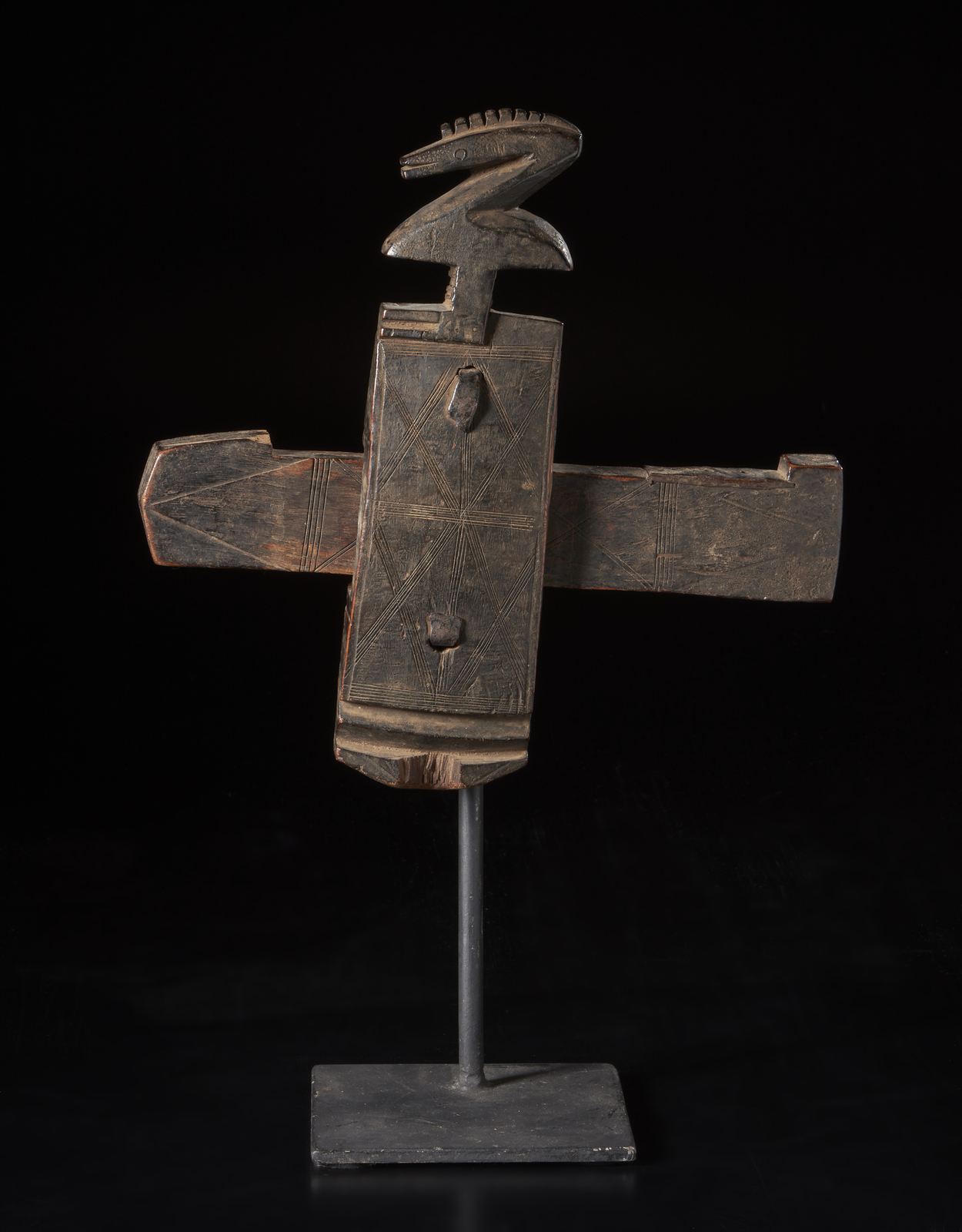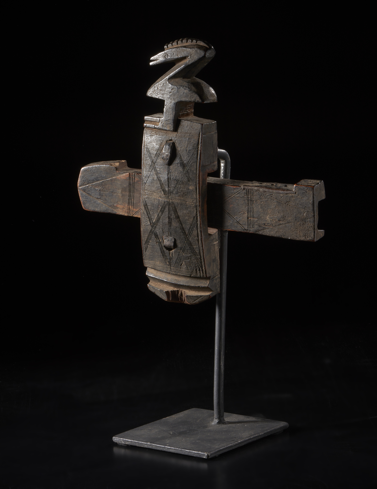 Arte africana - Dogon, Mali. Serratura per porta di granaio con figura zoomorfa. Legno duro a patina nera, metallo. .