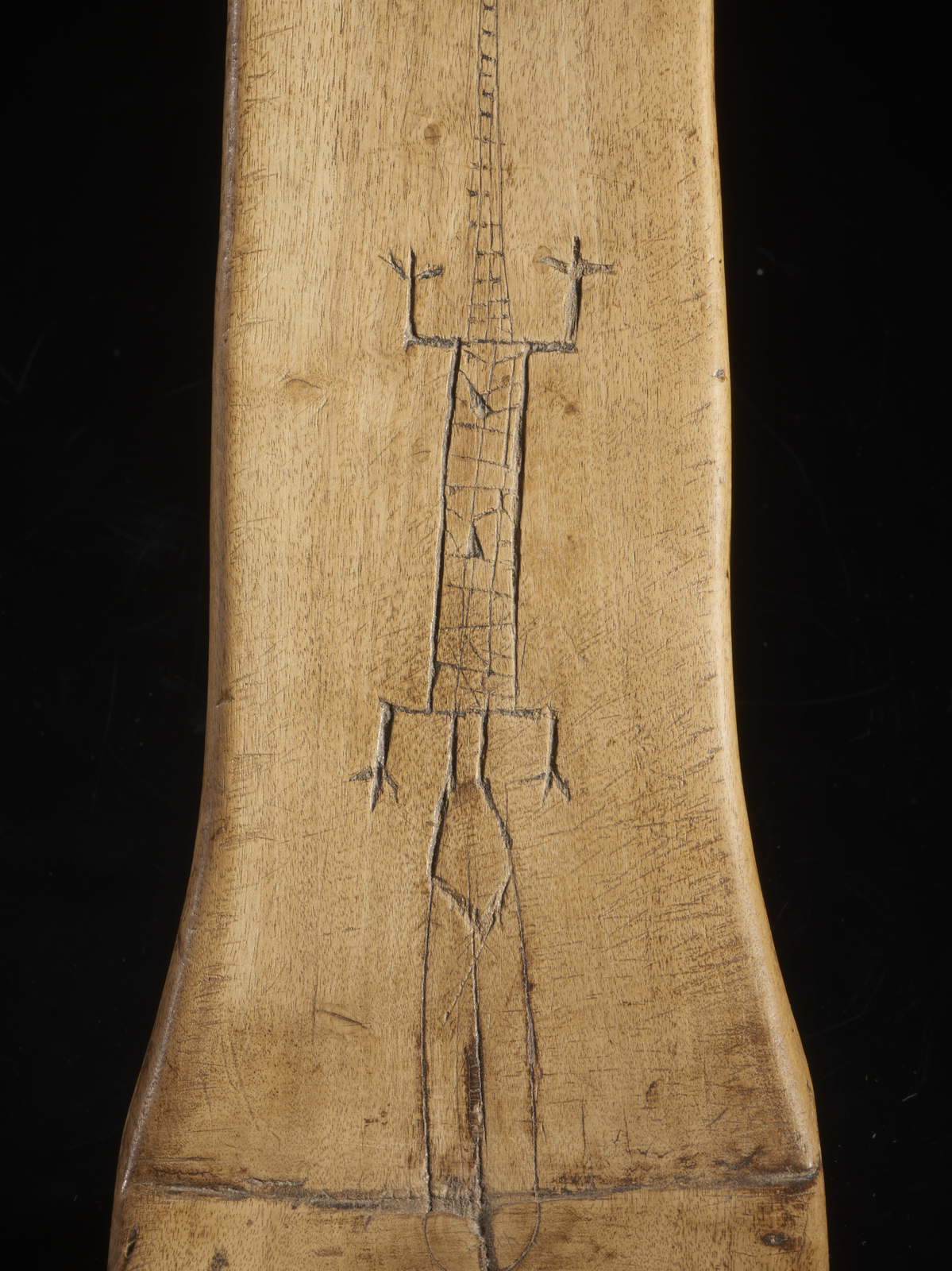 Seggio in legno duro a patina chiara.