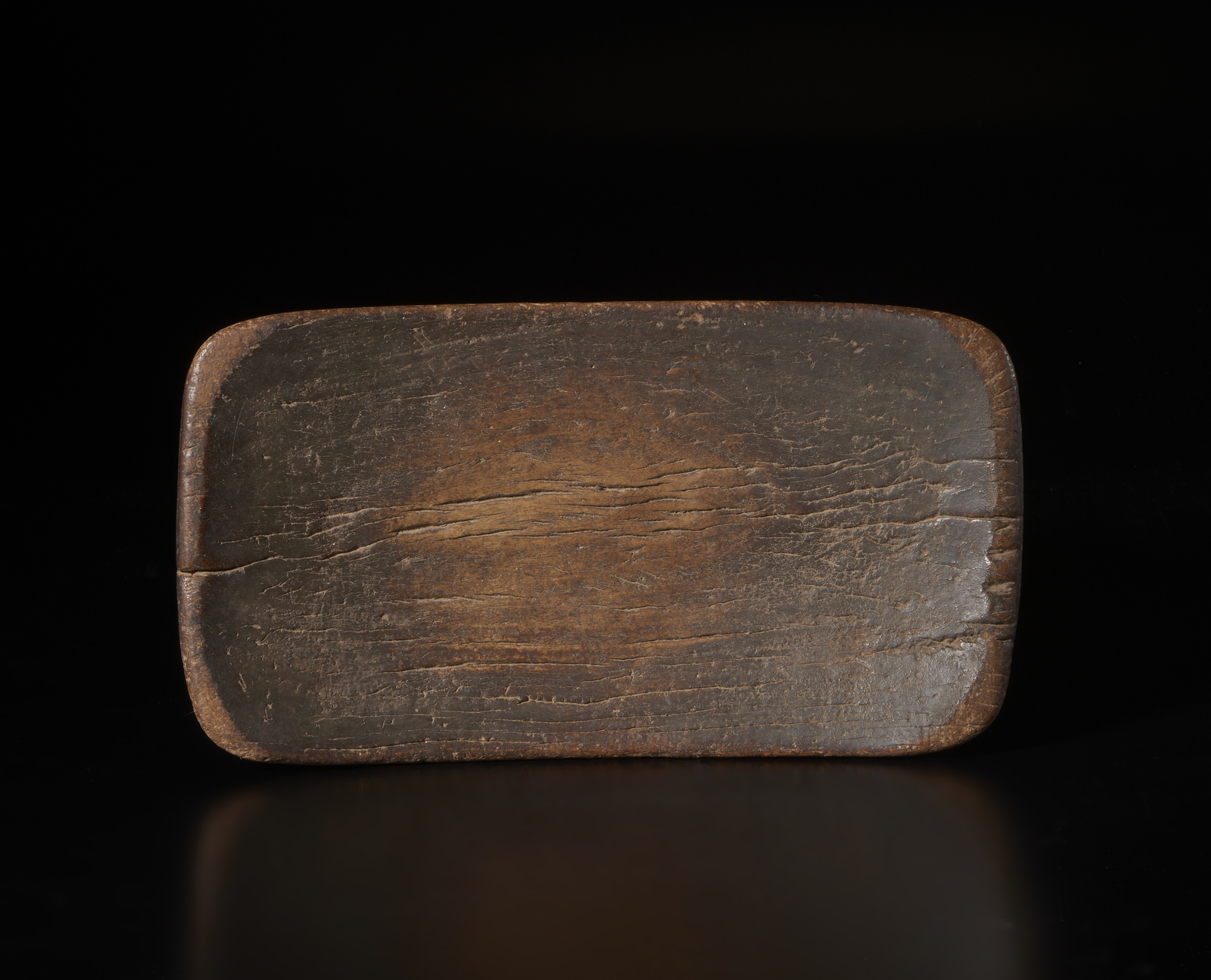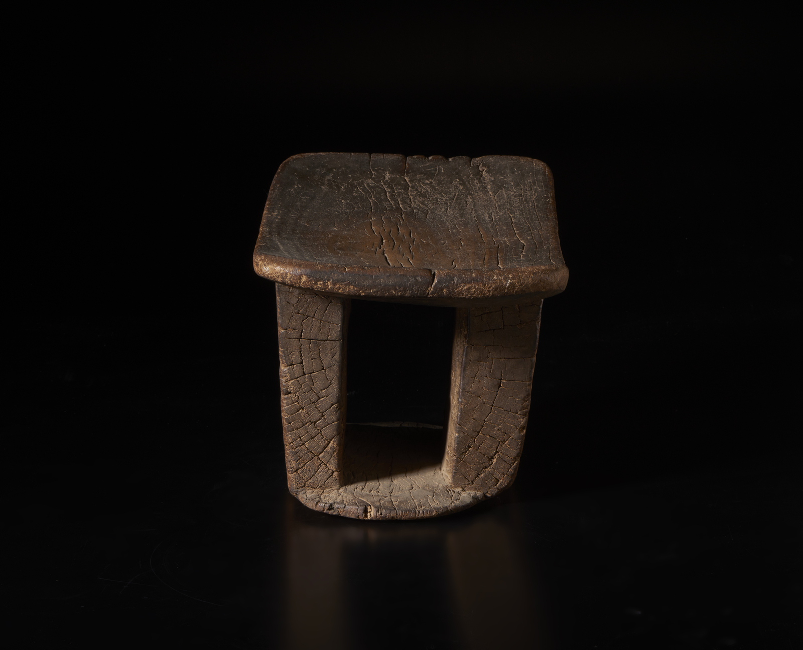Segni d'uso. . . Cm 24,50 x 45,00 x 23,00. Questo pesante seggio ricavato da un unico blocco di legno duro, di difficile attribuzione e connotazione geografica data l’assenza di elementi decorativi, è caratterizzato da un design arcaico, lineare e sintetico.