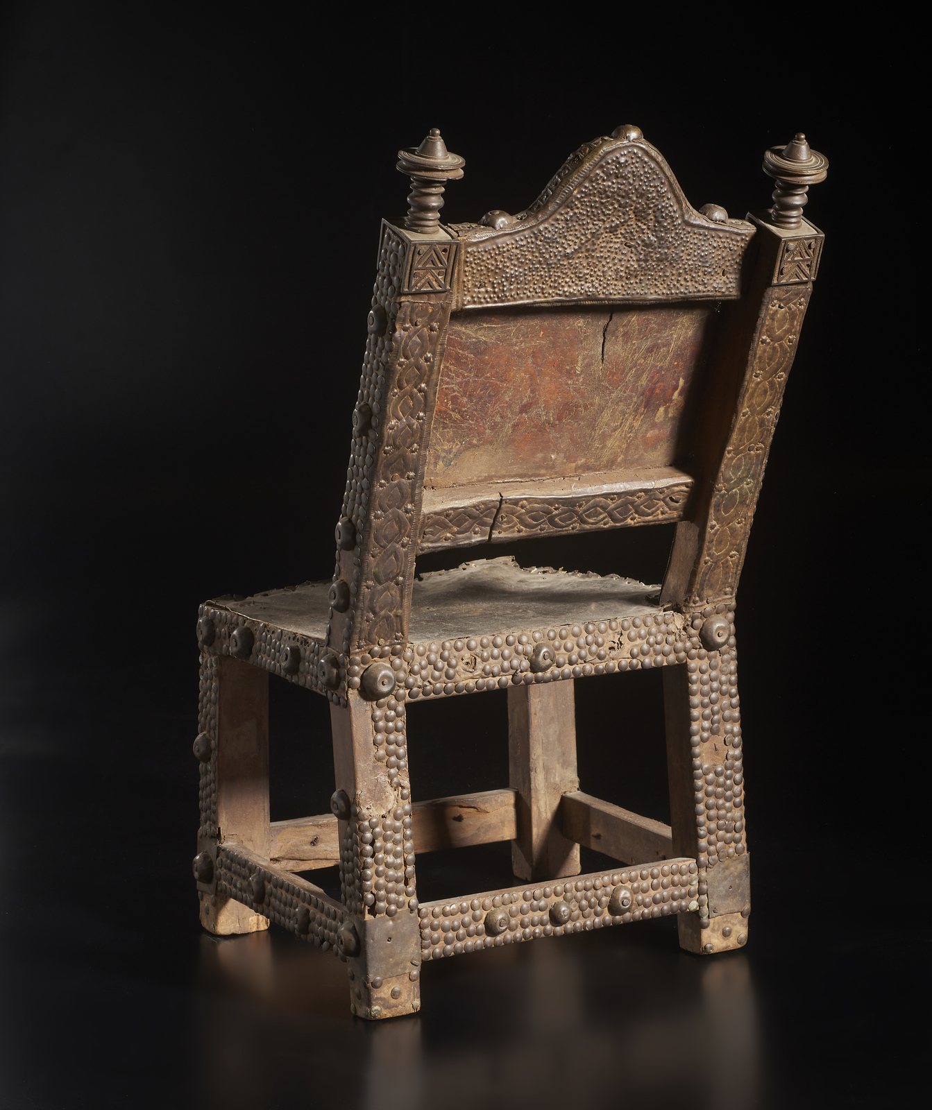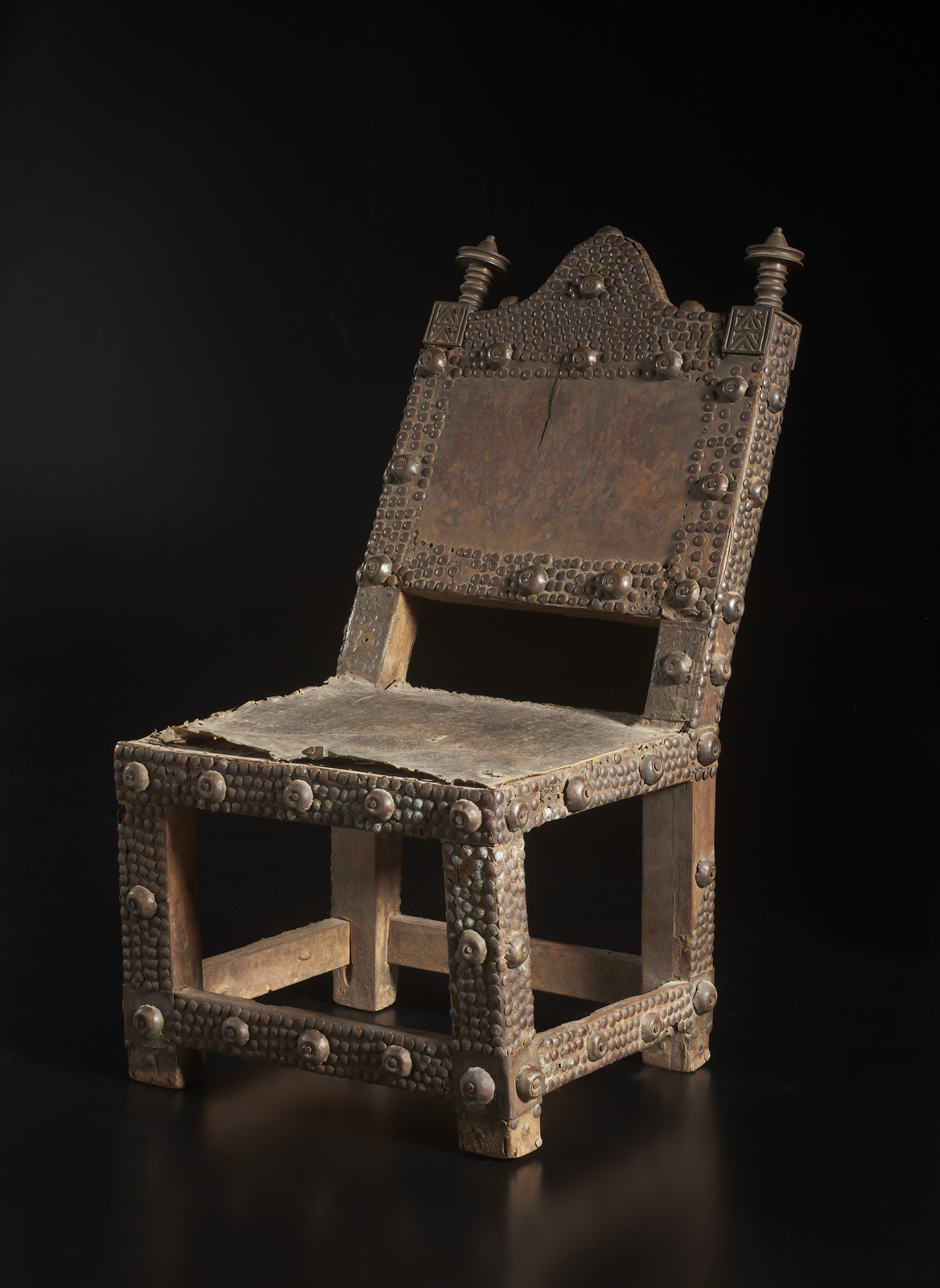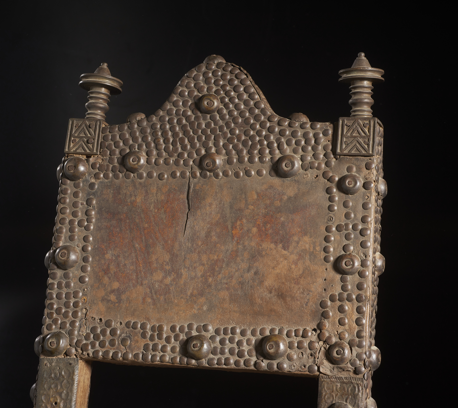 Arte africana - Ashanti, Ghana. Seggio reale in legno, metallo e pelle. Difetti visibili e segni d'uso.