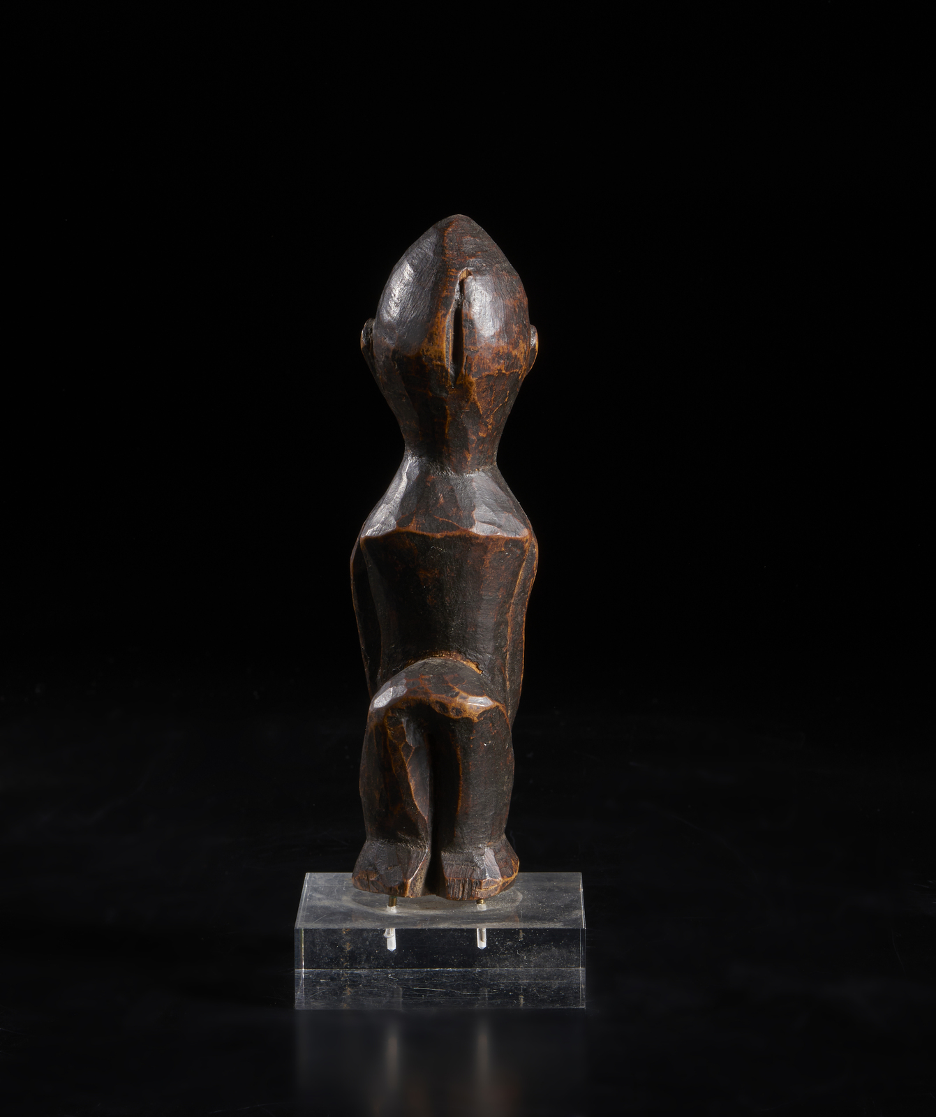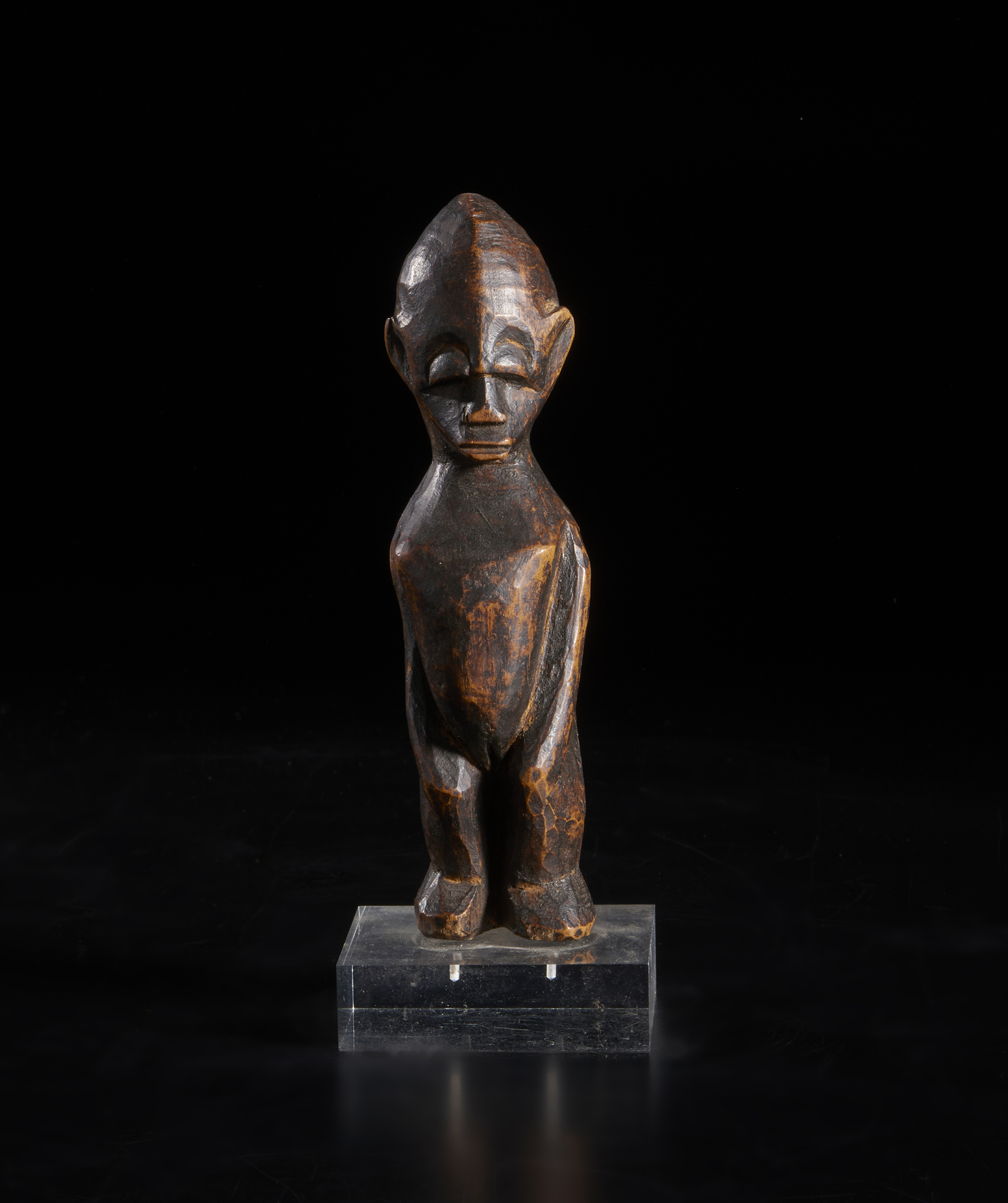 Legno duro a patina marrone. . . Cm 5,00 x 17,00 x 5,00. Figure antropomorfe Bateba come questa venivano commissionate e utilizzate tra i Lobi per la protezione del proprietario, della sua casa e famiglia.