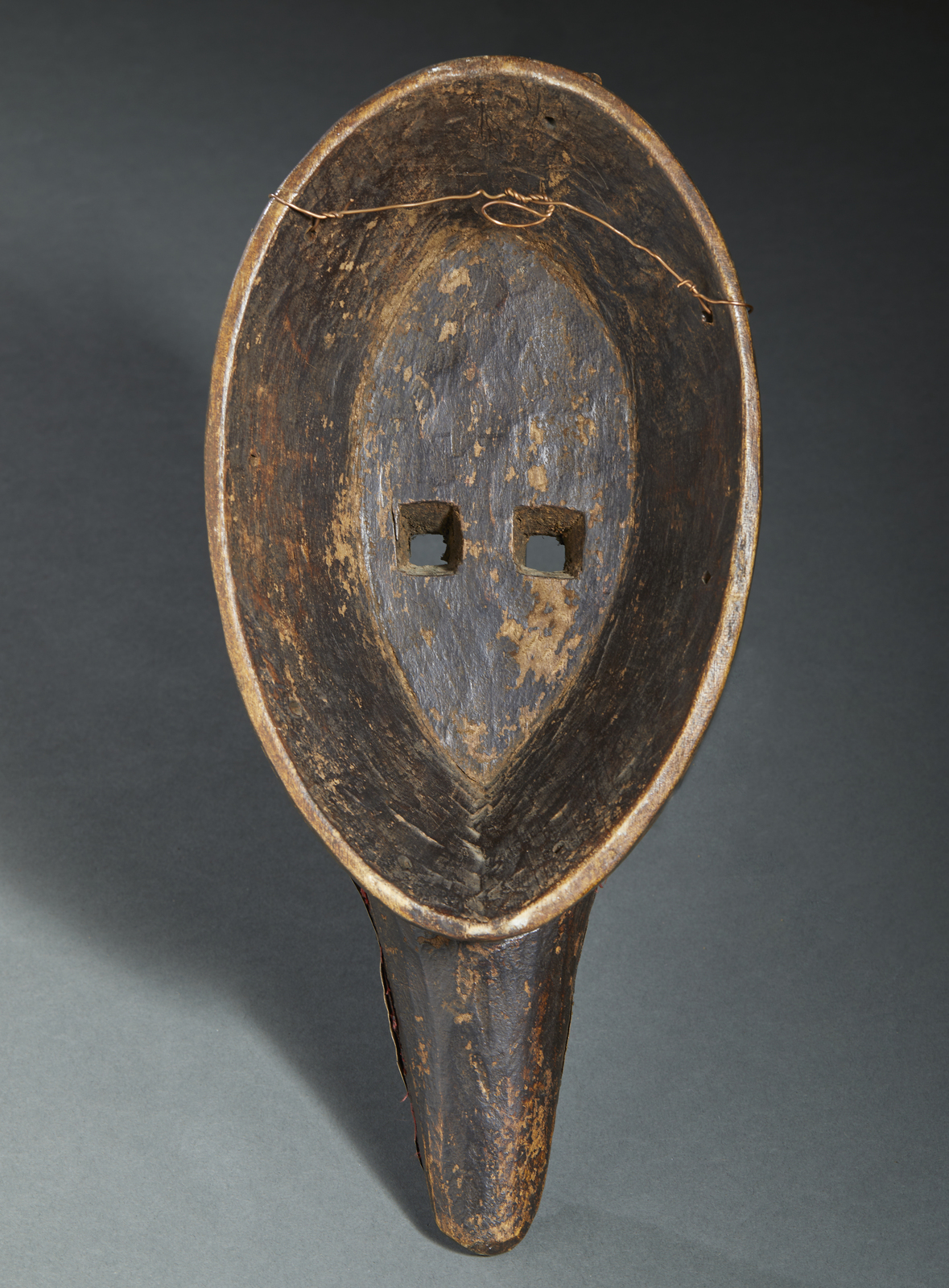 Gli occhi quadrati, cosi come la presenza delle corna, ci suggeriscono invece una chiara influenza stilistica Bambara ed il probabile utilizzo di questa versatile maschera Ngolo anche in ambito dei riti Ntomo.