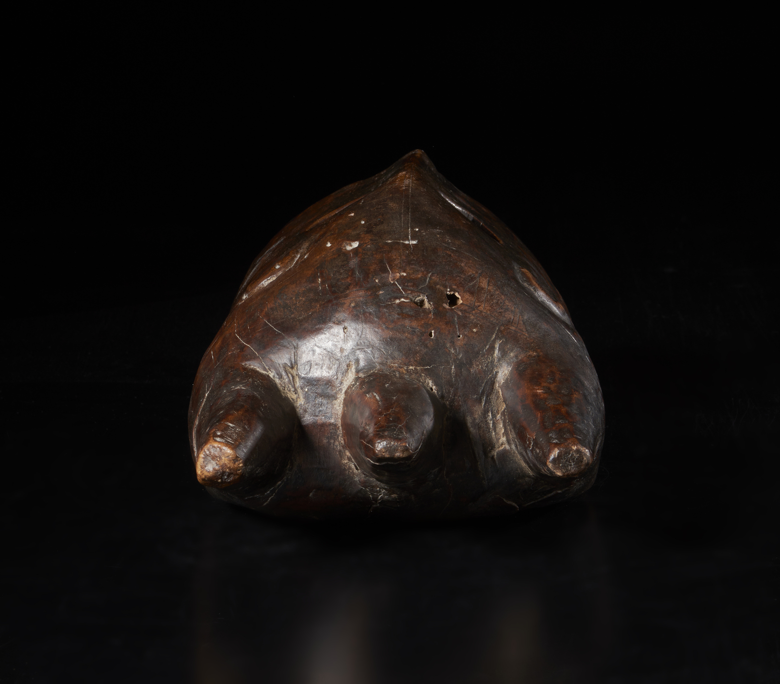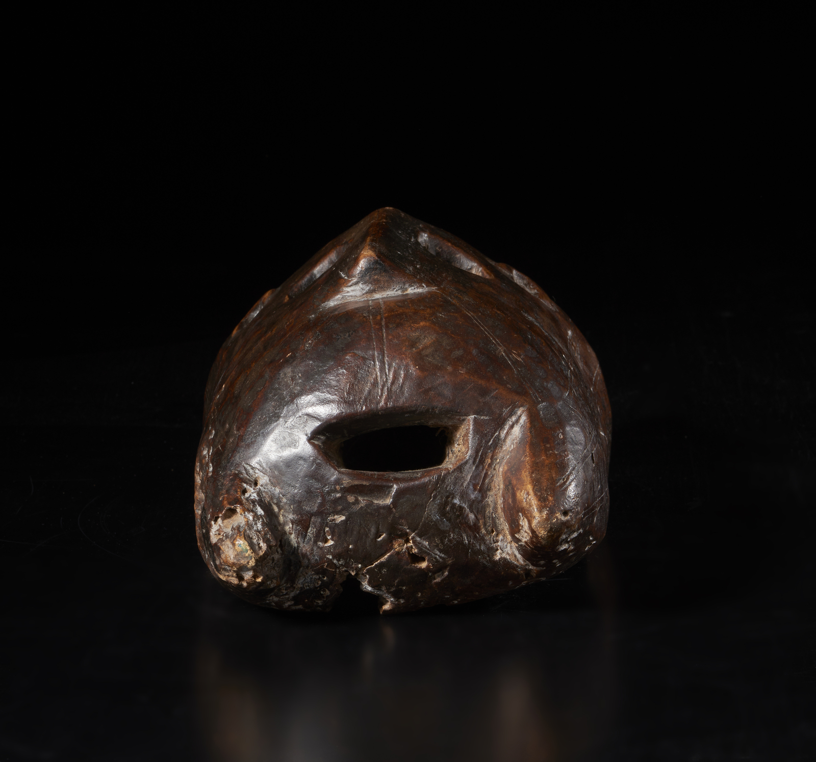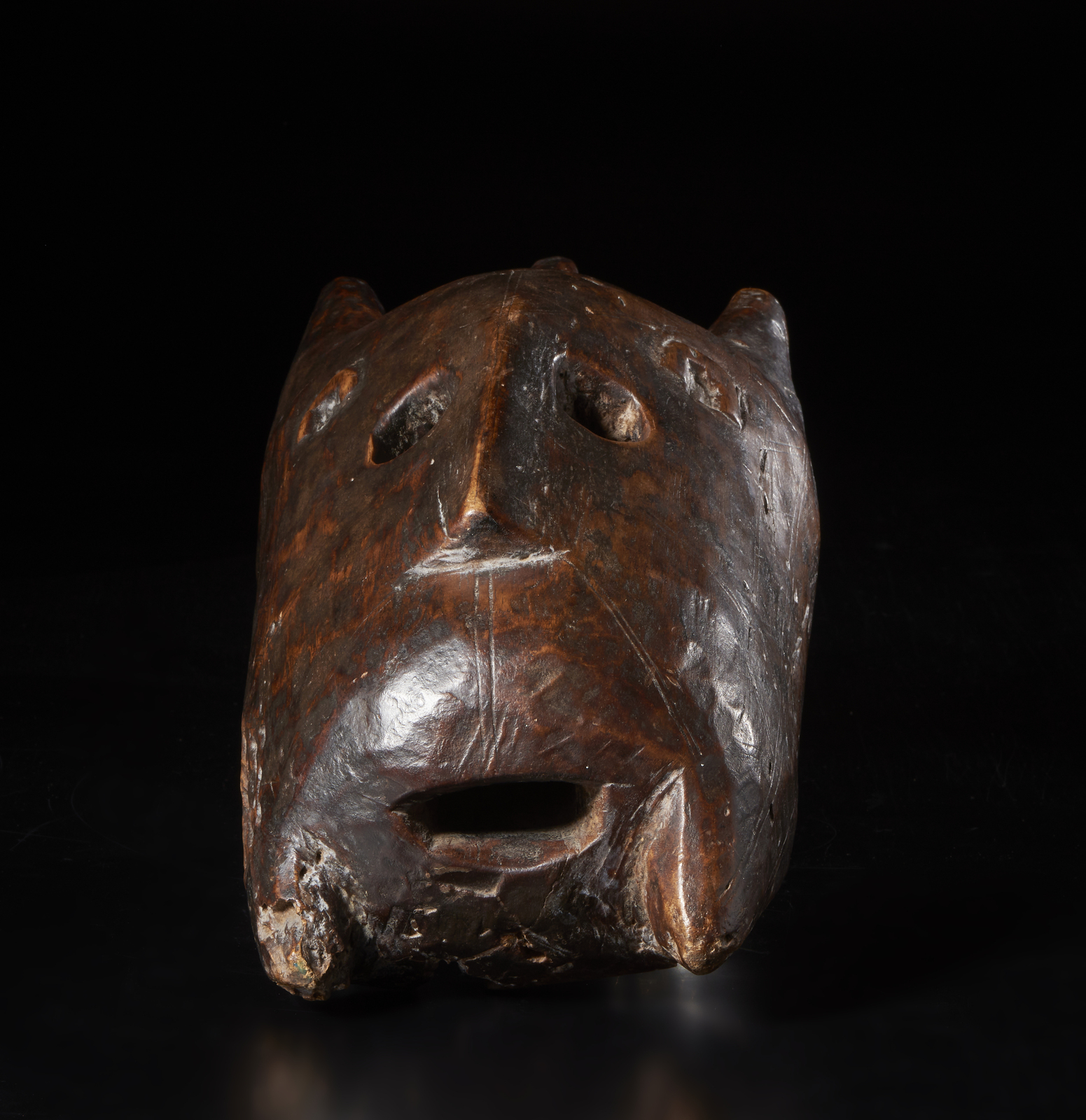 Segni d'uso. . . Cm 20,00 x 44,00 x 15,00. Maschera Bambara di un volto estremamente stilizzato che comprende sia elementi antropomorfi che zoomorfi.