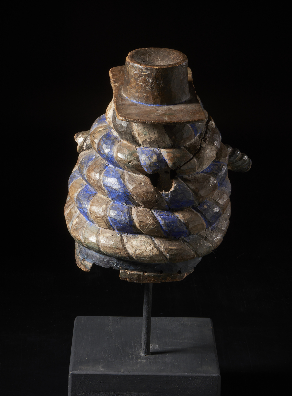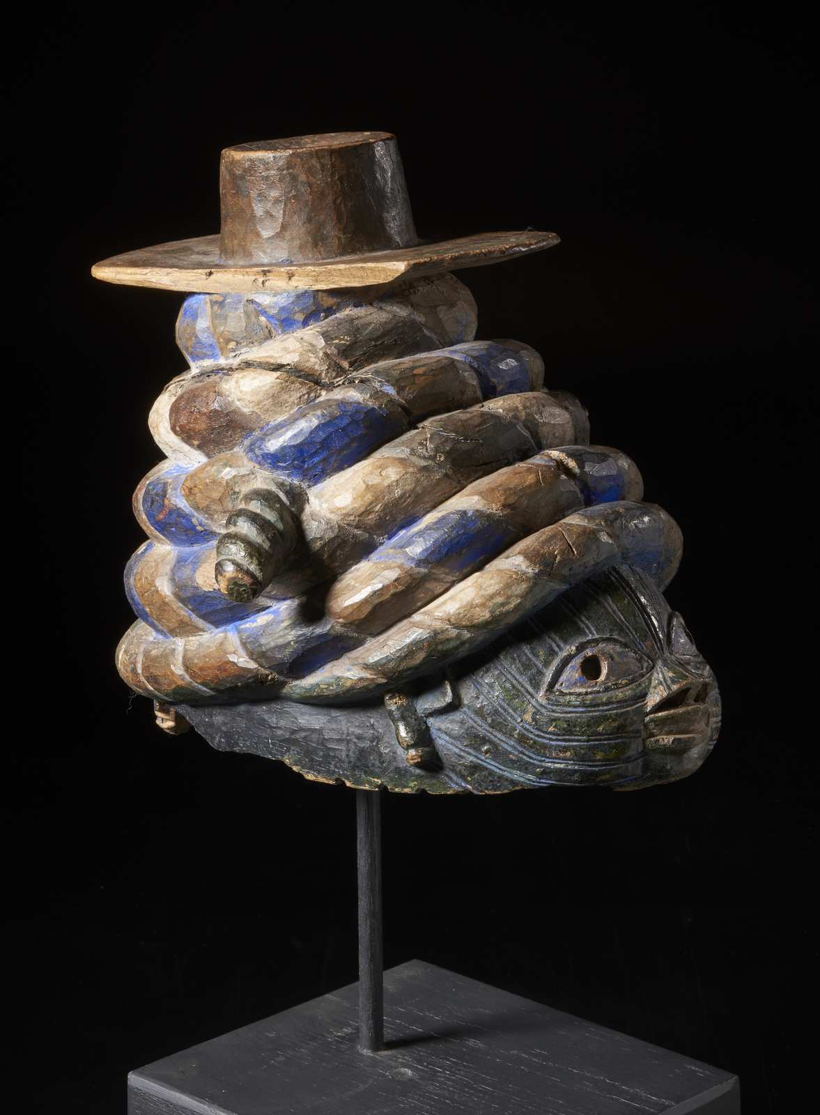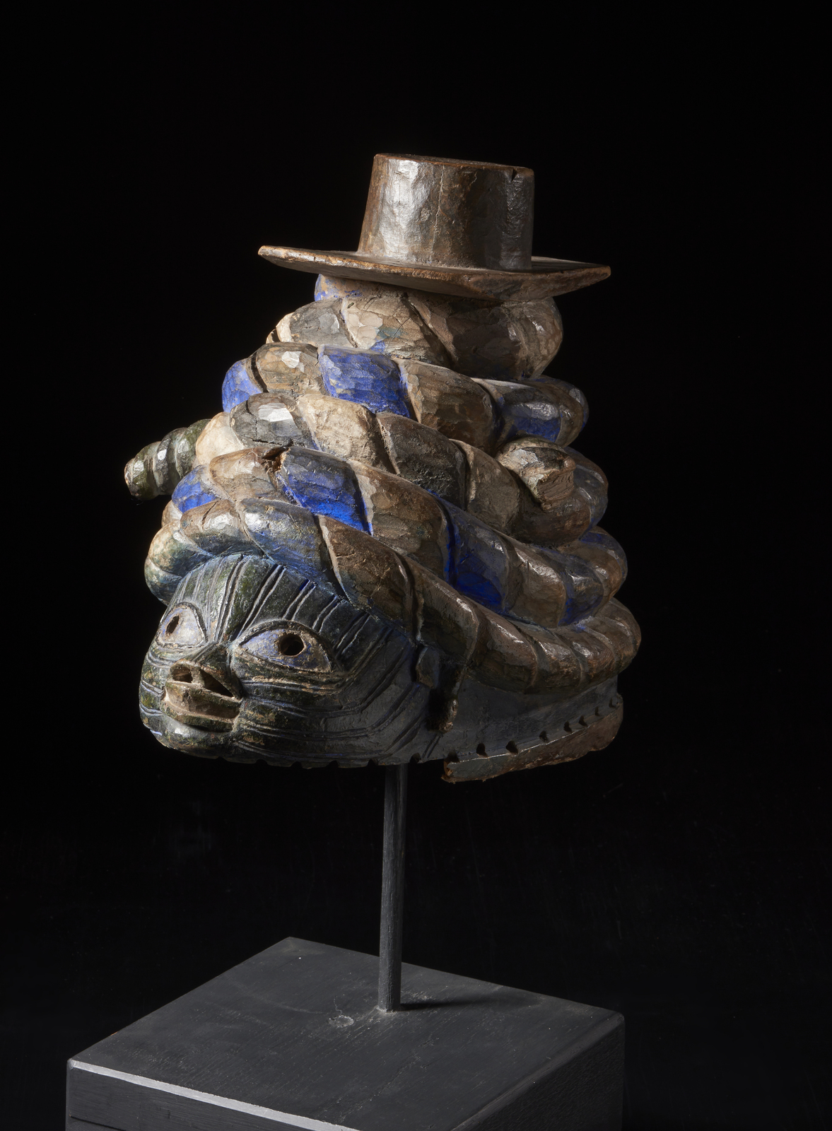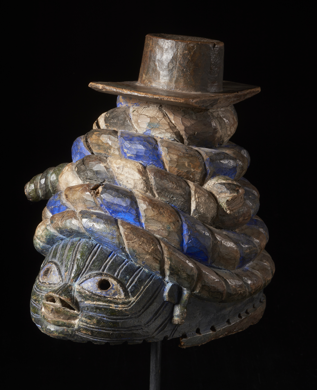 Le maschere Gelede sono sempre state molto apprezzate dal collezionismo per la fantasiosa stravaganza e la grande creatività utilizzata nella produzione artistica e non è raro imbattersi in maschere con rappresentazioni di pitoni o altri serpenti che in alcune zone della Nigeria sono adorati come divinità .