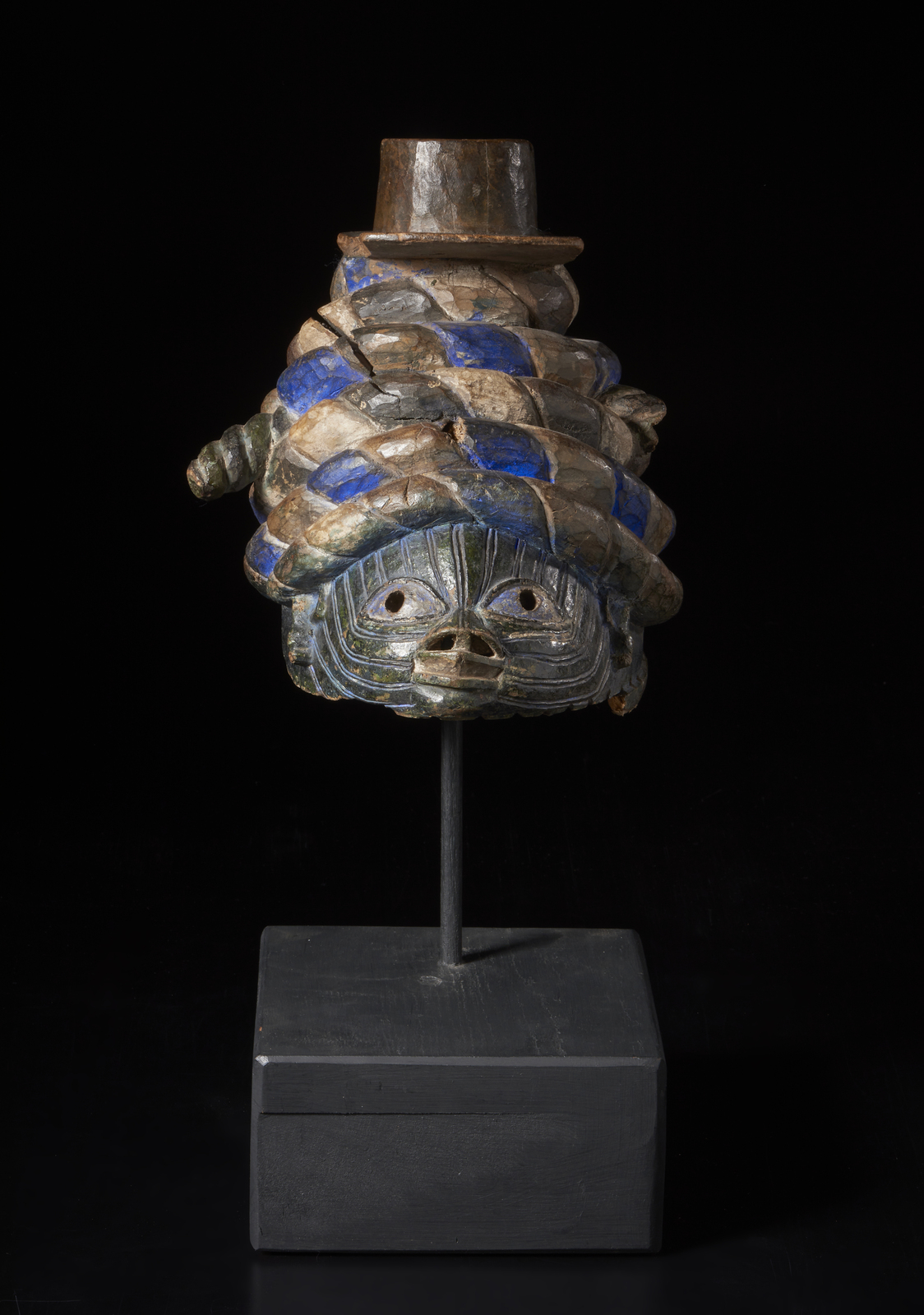 Ex collezione Renato Volpini. . . Cm 25,00 x 30,00 x 31,00. Maschera a casco spettacolare e appariscente come molte delle maschere Yoruba utilizzate nei riti i Gelede per rendere omaggio alle donne anziane, Nostre Madri ( awon iya wa).