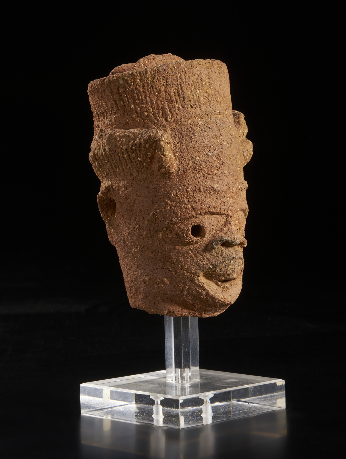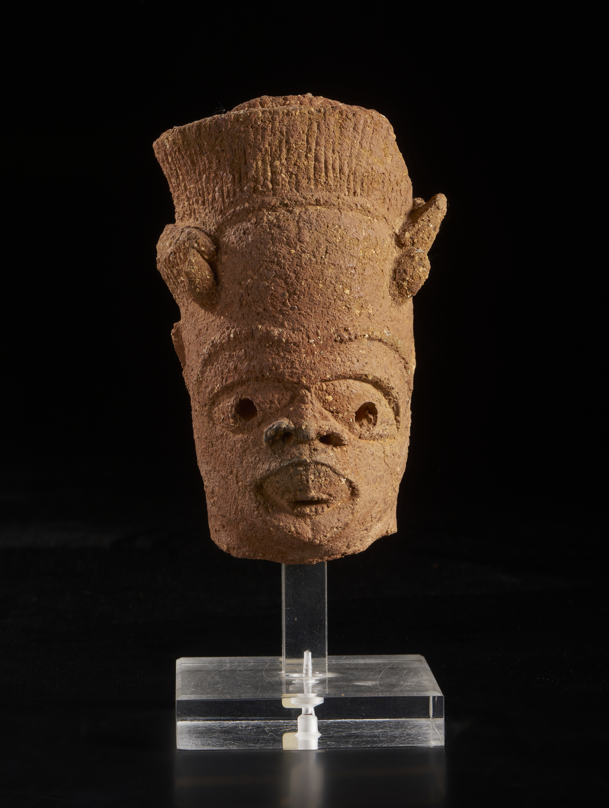 Arte africana - Nok, Nigeria. Testa in terracotta. III-II sec a.C. Alcuni difetti visibili. .