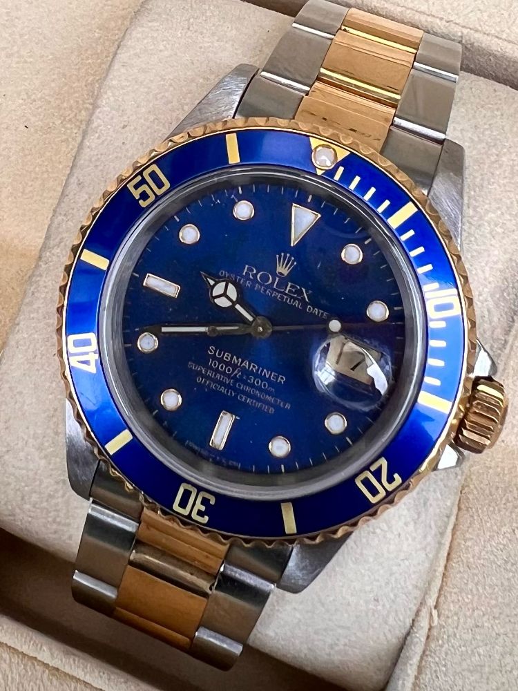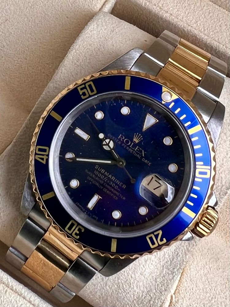 Marca Rolex Modello submariner Quadrante nero Misura 40mm Materiale Acciaio e oro 18ct Condizione Usato Ref 16613 Anno 1989 circa Cassa fori Quadrante bicchierini Cinturino oyster Corredo libretti e scatola di cortesia NO SCATOLA NO GARANZI