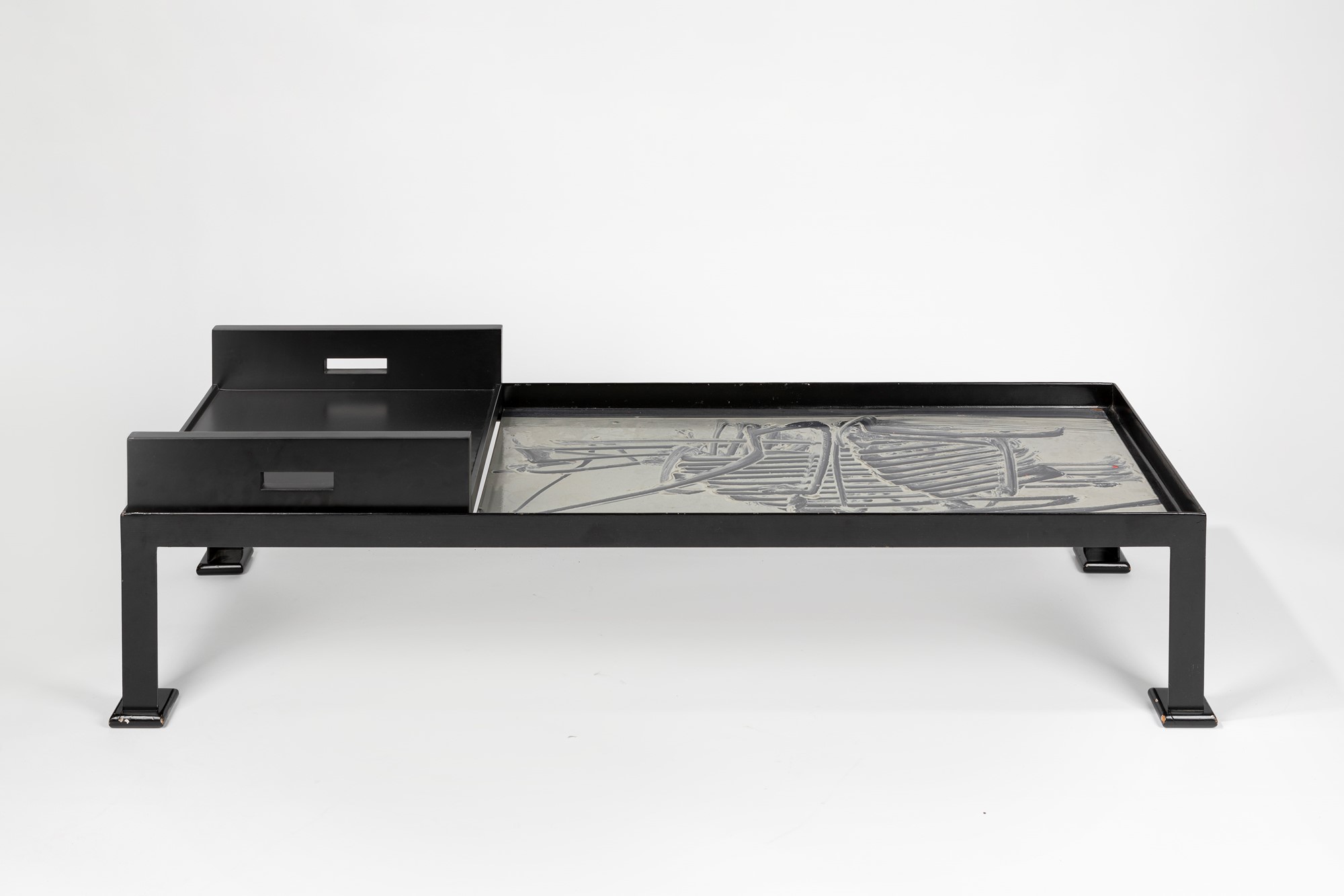 Struttura del tavolo disegnata dall'architetto Vittoriano Viganò negli anni settanta in sostituzione alle gambe in metallo originali, deterioratesi nel tempo.