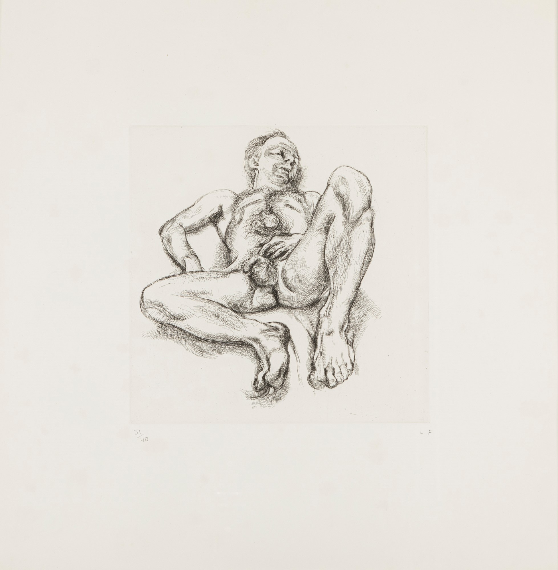 Lucian Freud (Berlino 1922-Londra 2011) - Naked man on a bed, 1990