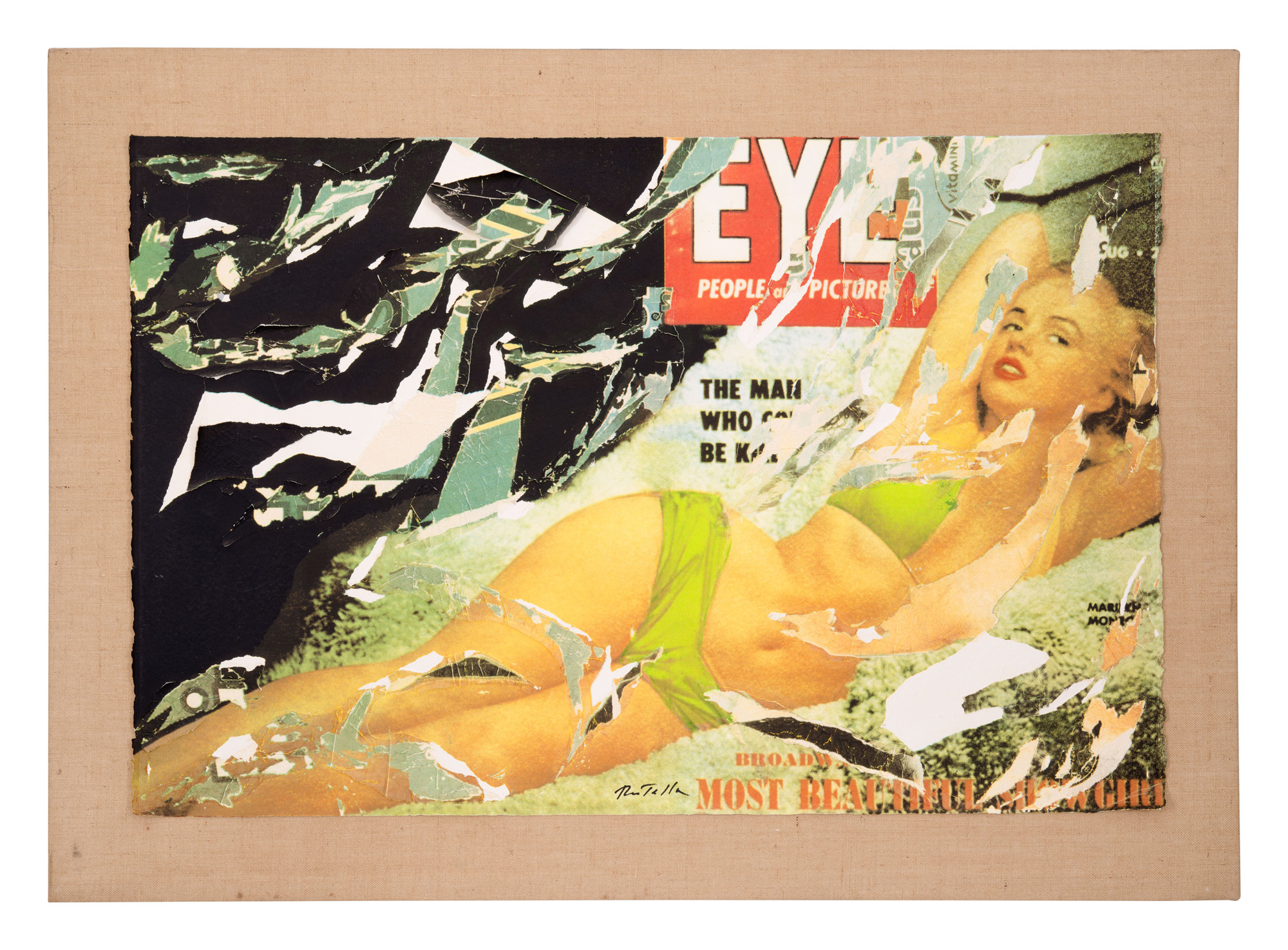 L'opera è décollage applicato su tela ed è in buone condizioni. Ad una visione diretta a luce naturale non si ravvisano anomalie di sorta. La tela è ben tensionata al telaio, anch'esso risulta essere in buone condizioni, non sono presenti allentamenti o deformazioni.