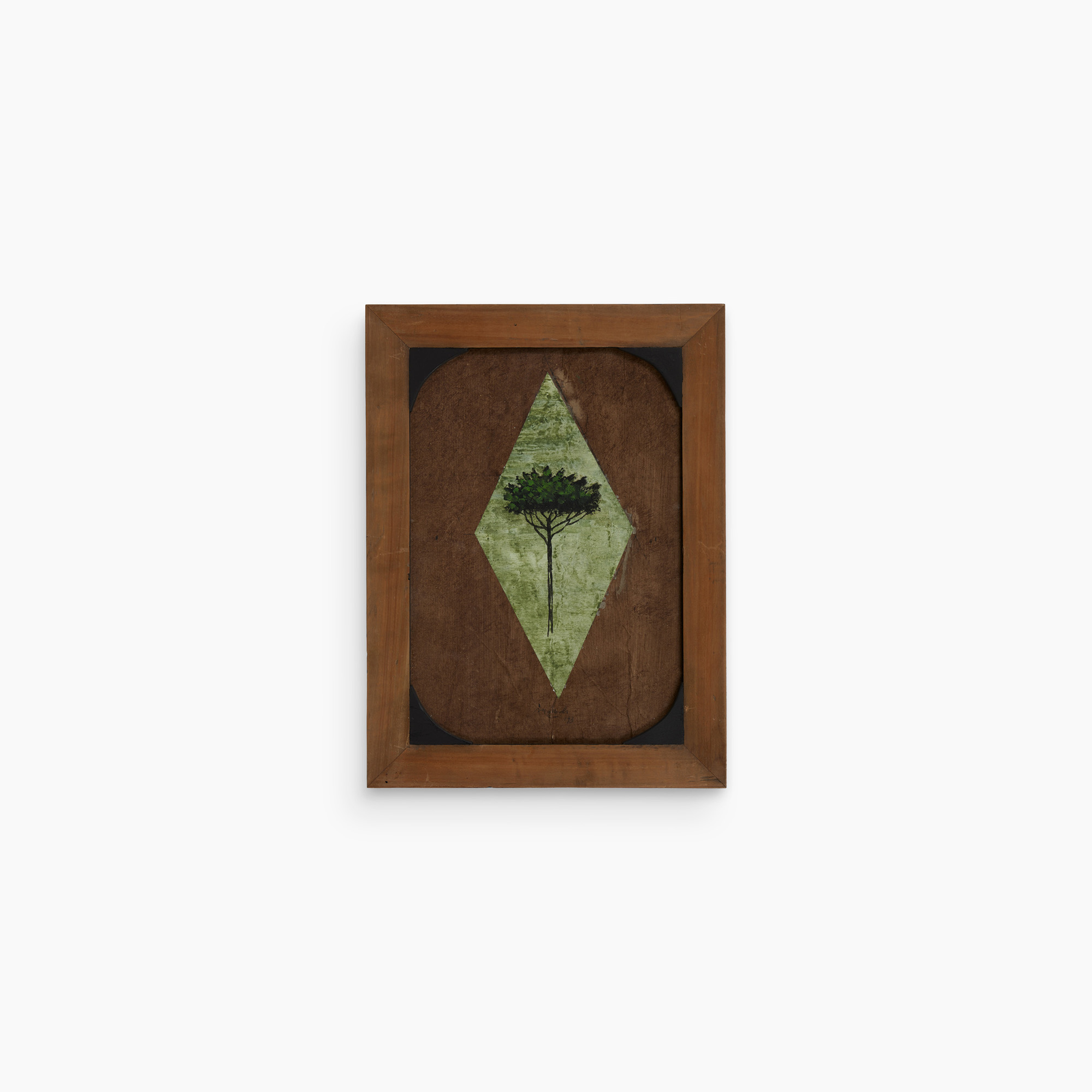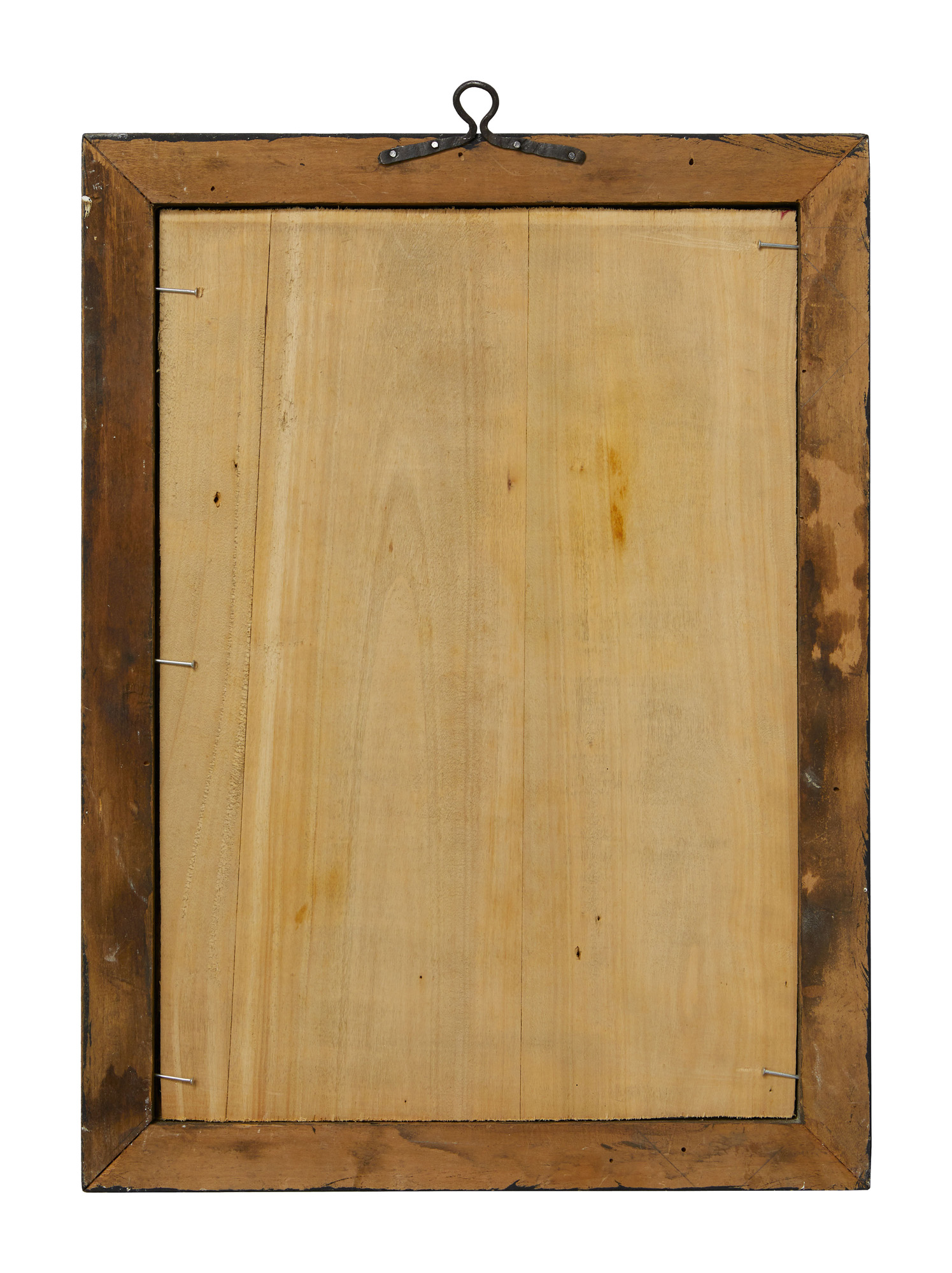 L’opera è eseguita su carta da pacco e applicata su cartoncino. L’esame alla luce ultravioletta non ha evidenziato fluorescenze anomale riconducibili ad interventi di restauro. Alla visione diretta, in alcuni punti circoscritti la carta risulta essere sollevata dal supporto e sono visibili alcuni raggrinzamenti della stessa, originati dall'artista stesso che ha incollato la carta al supporto, firmandolo poi sul retro. Si raccomanda la conservazione in ambiente ad umidità e temperatura stabili.