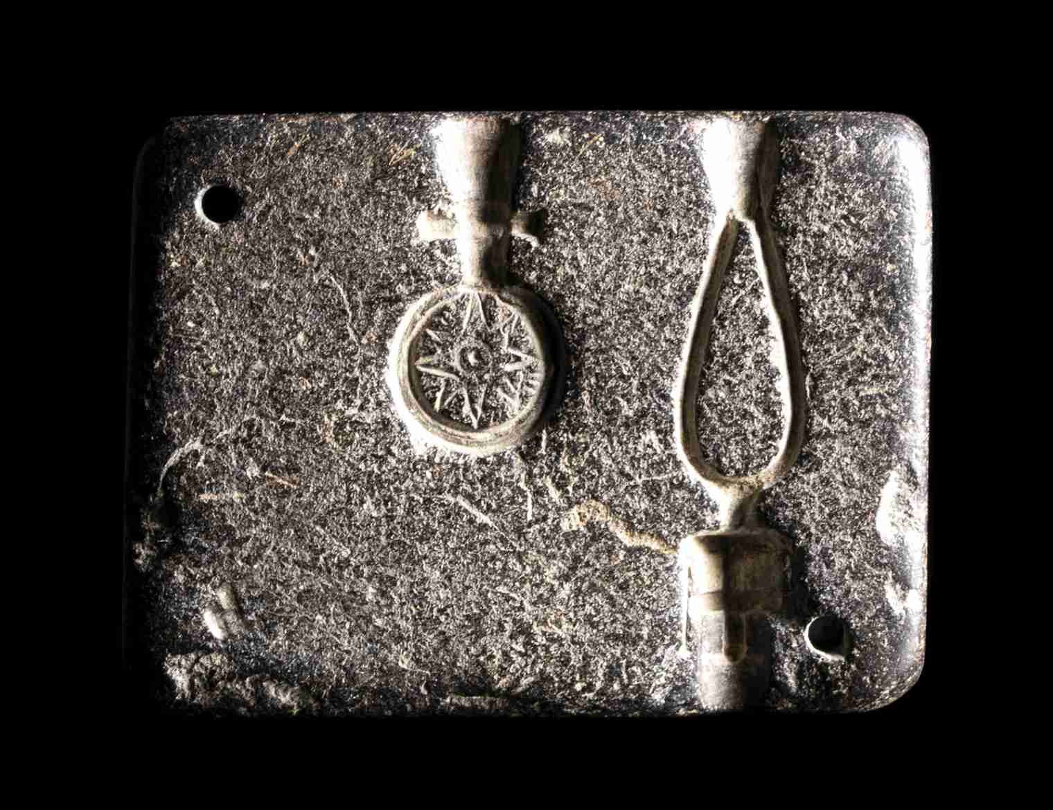 AN EASTERN MEDITERRANEAN SANDSTONE JEWELRY MOLD