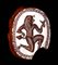 The bearded Silenus with no tail is depicted in the typical "knielauf position" facing right: with his right hand he holds a jug, with his left a kantharos for drinking. Refined execution with traces of globular elements. Hatched frame. In the category of the so called "Robust style". Fragmentary edge with missing part. Wear marks.