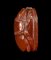Hybrid figure sitting on his own legs composed of a human body and a boar's head. The creature is facing left and holds a kantharos. Use of globular elements. Dotted frame. Through hole. Slight wear marks. Interesting rare subject.