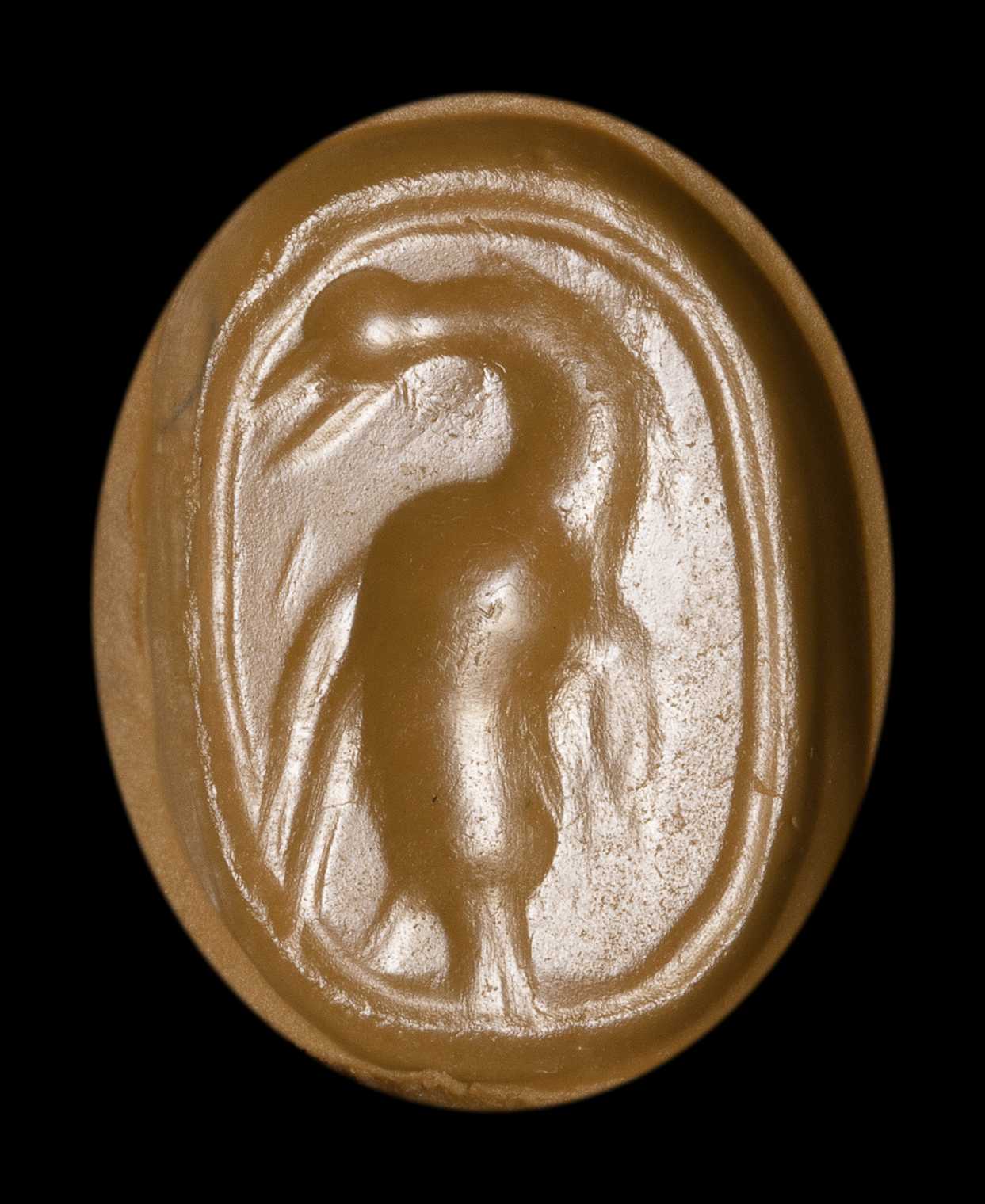 AN ETRUSCAN CARNELIAN SCARAB. GOOSE.