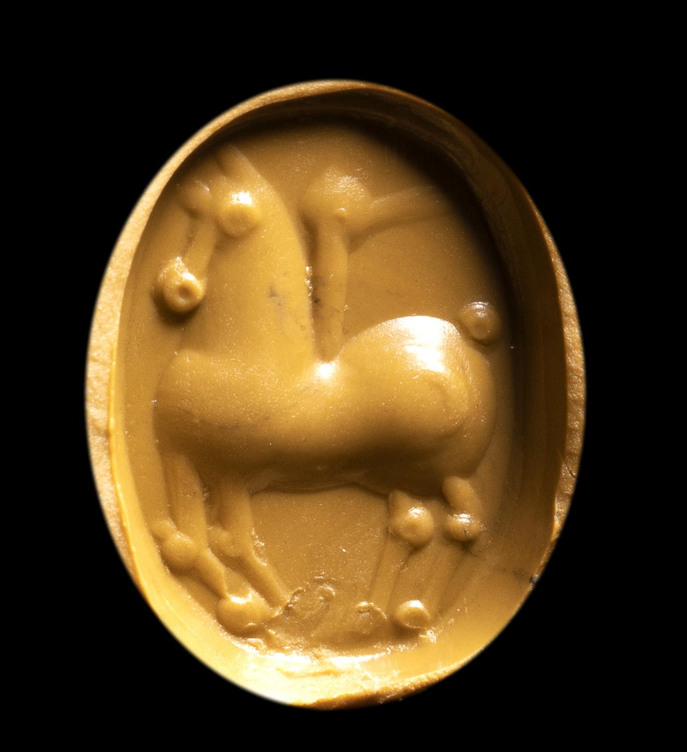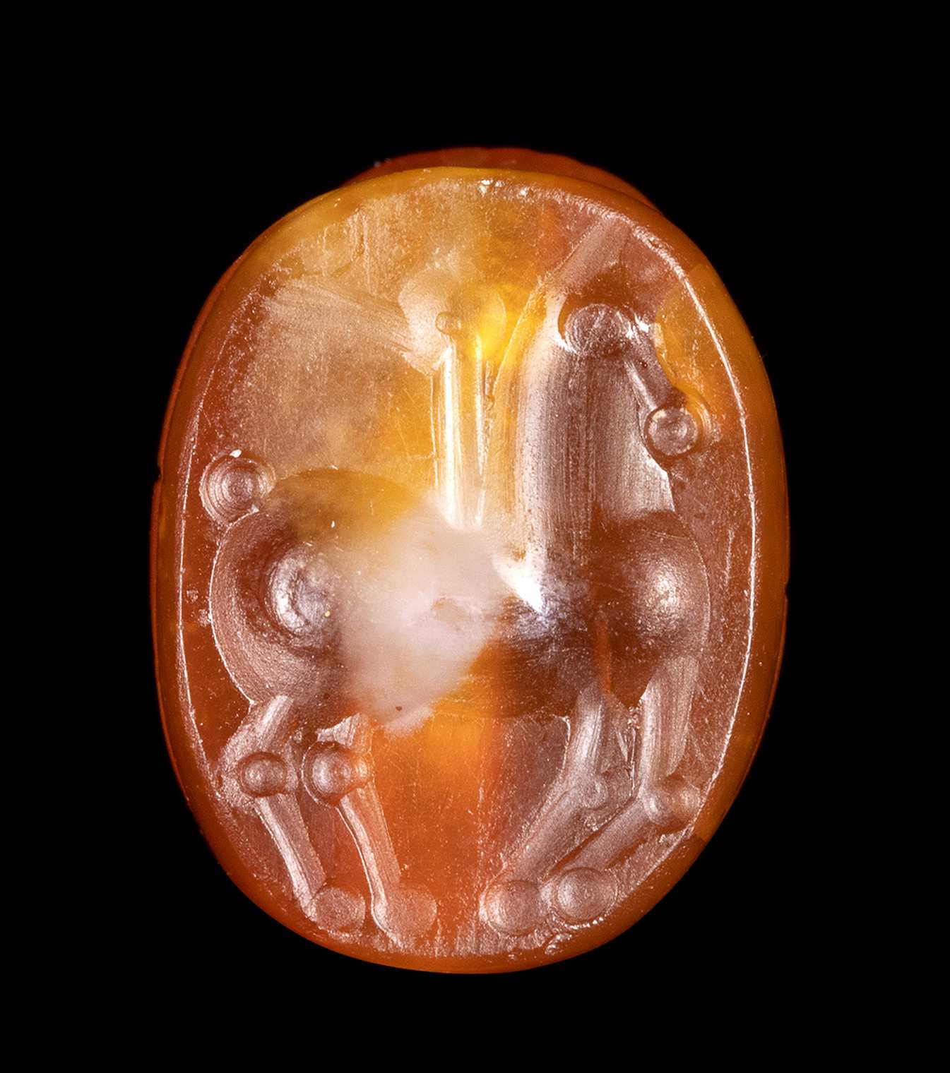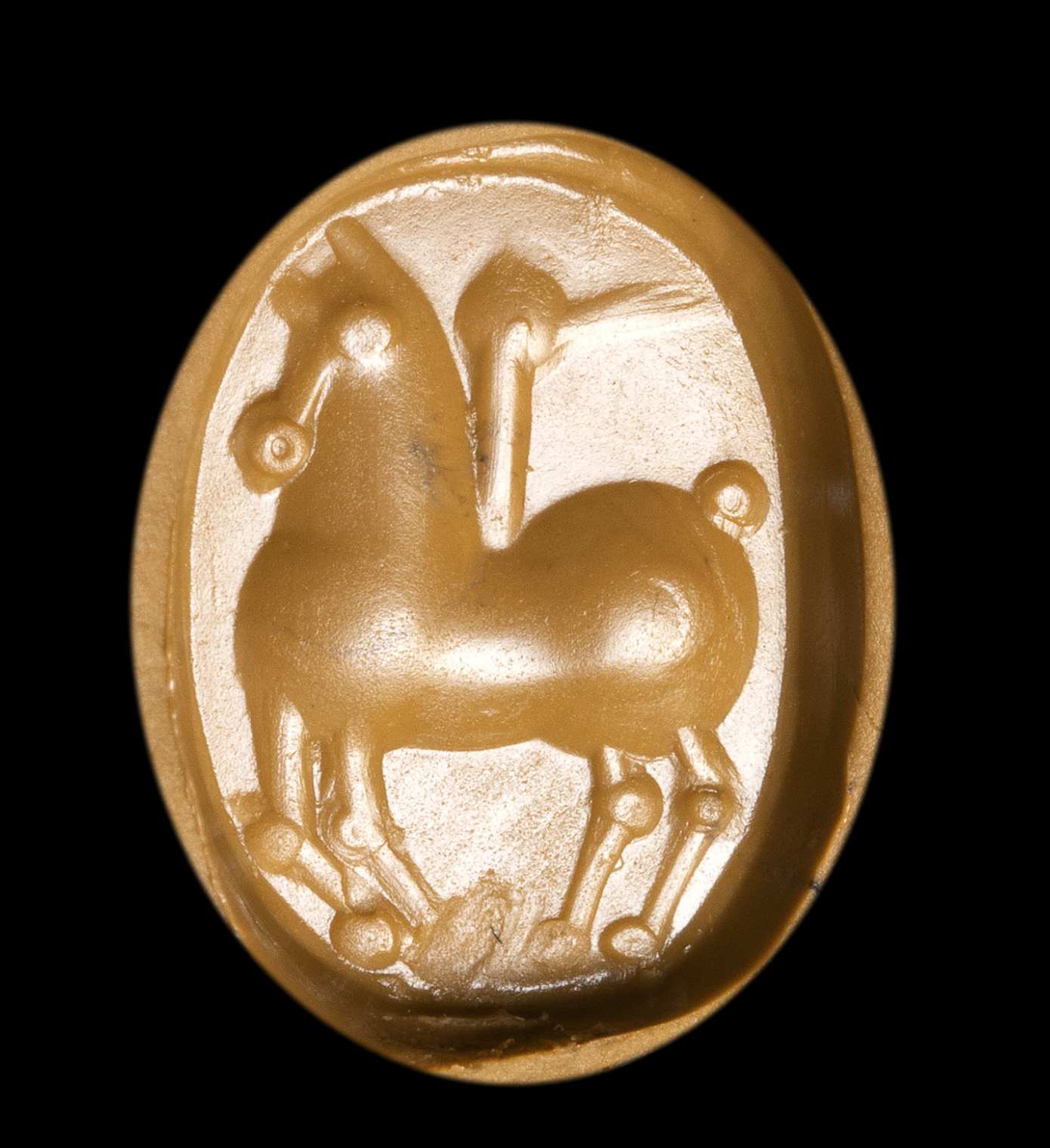 AN ETRUSCAN CARNELIAN SCARAB. HORSE.