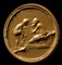 A young man is discussing with an old one seated on the ground. Probably a dialogue between Socrates and a young male figure. Stone is brocken in two parts but well fix in the frame. Beautiful variety of banded agate. Wear marks.