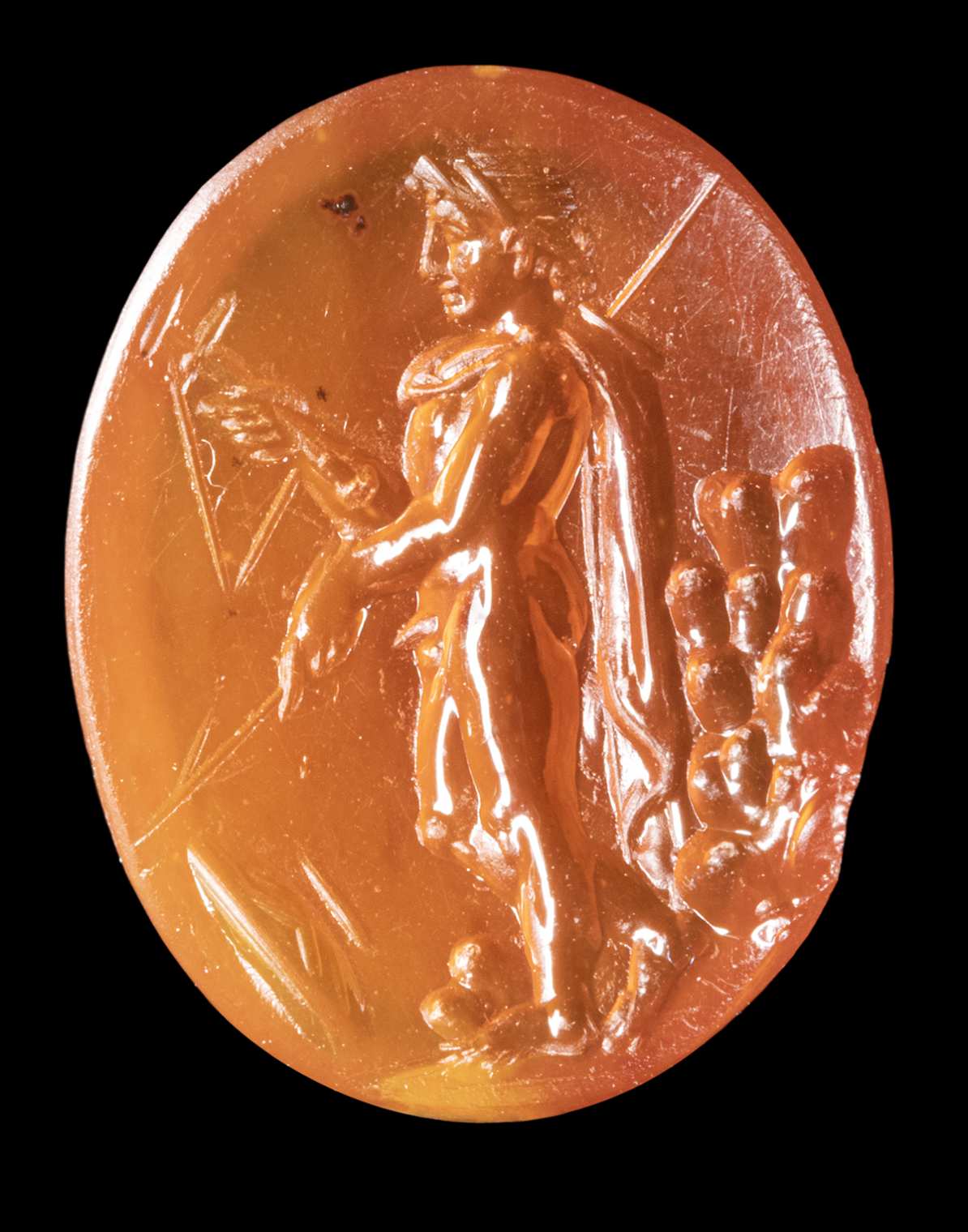A ROMAN CARNELIAN INTAGLIO. WARRIOR.