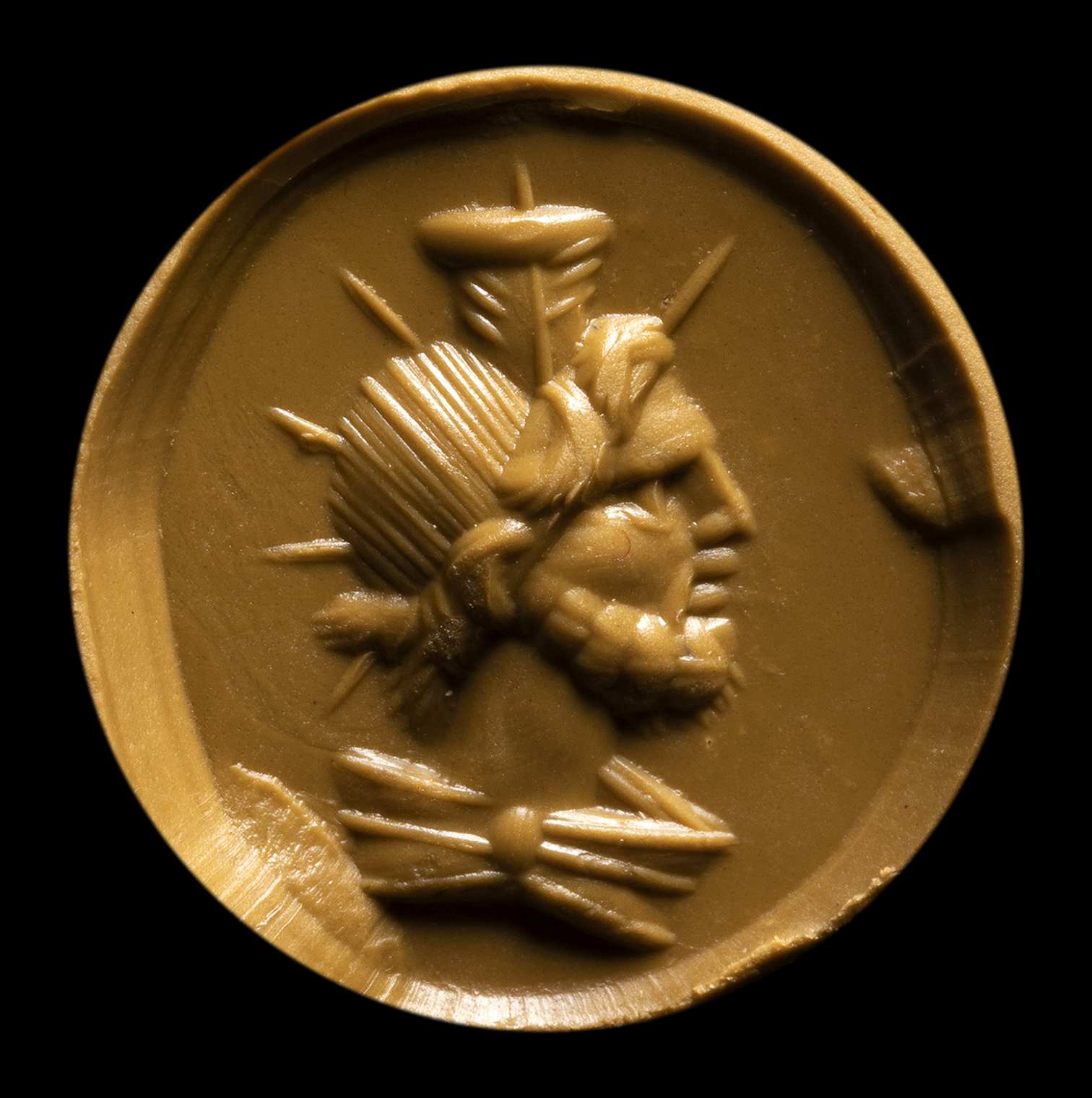 A ROMAN RED JASPER INTAGLIO. BUST OF ZEUS SERAPIS.