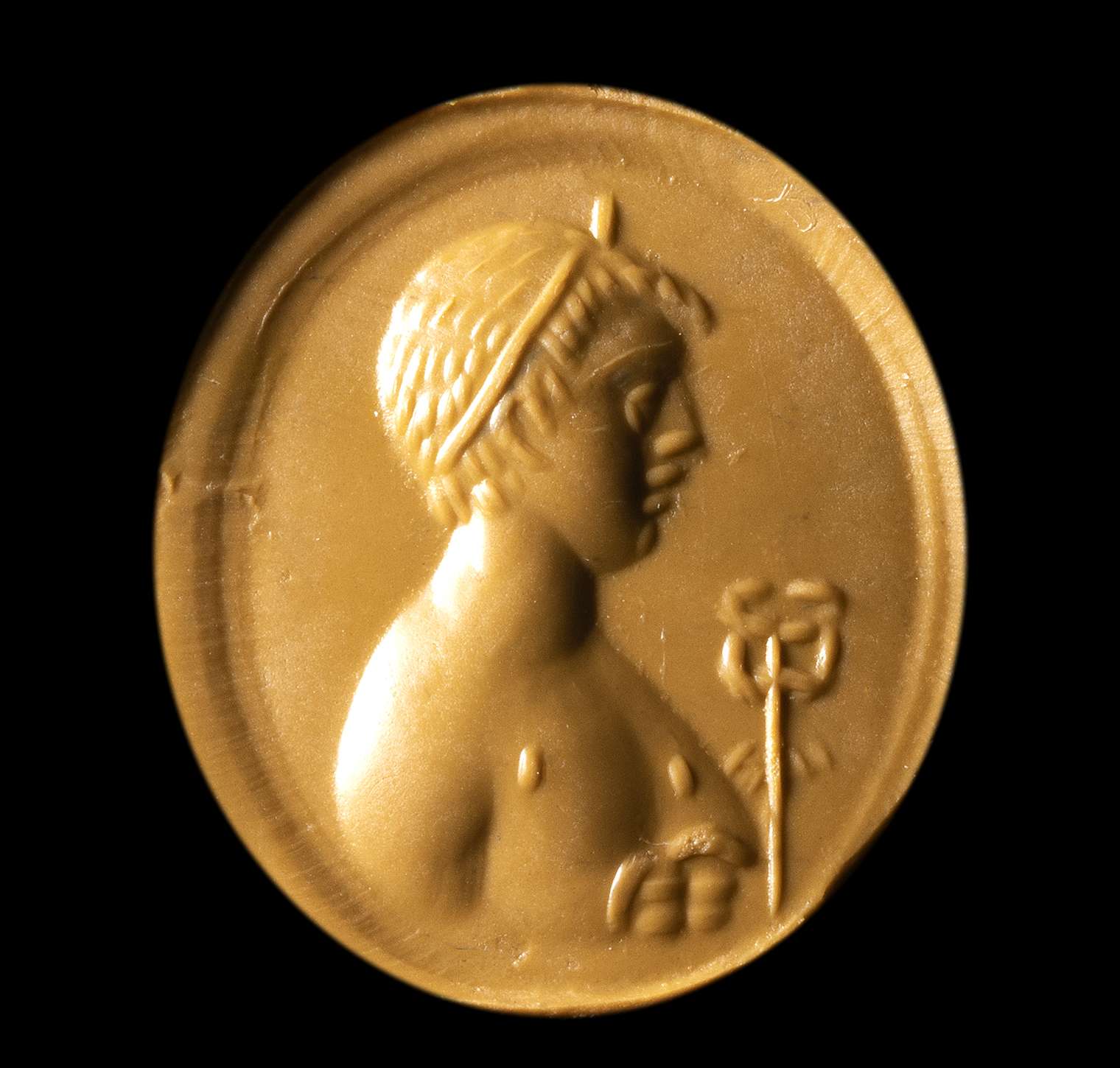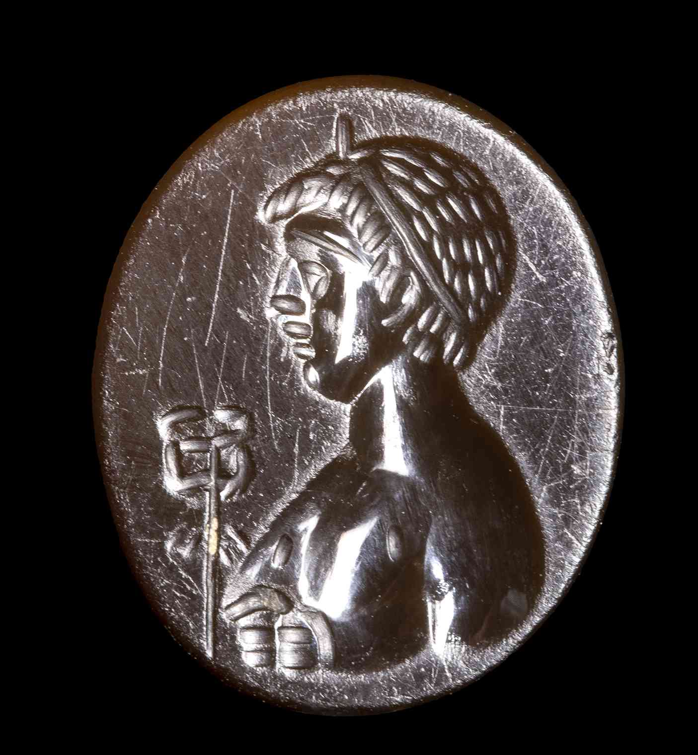 A ROMAN SARD INTAGLIO. BUST OF HERMES WITH THE CADUCEUS.