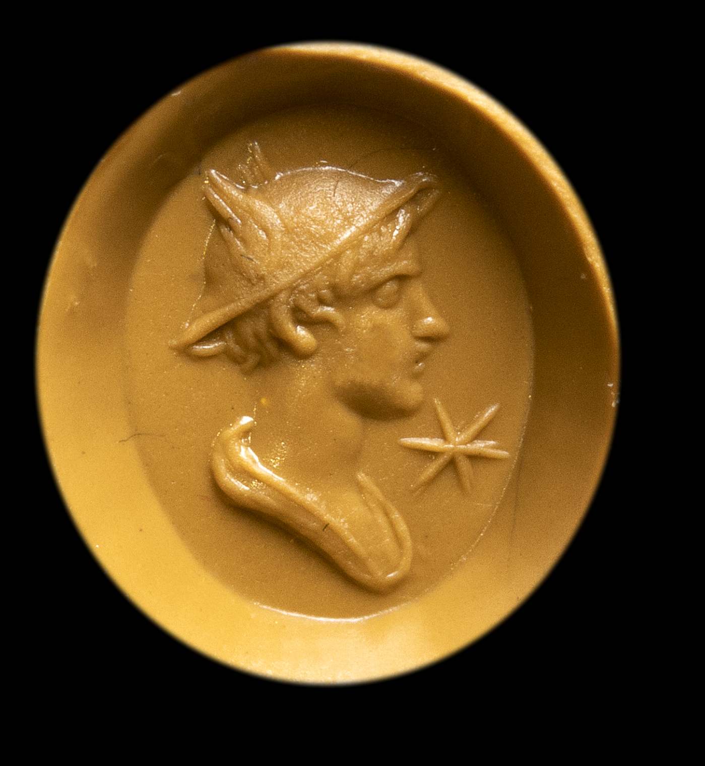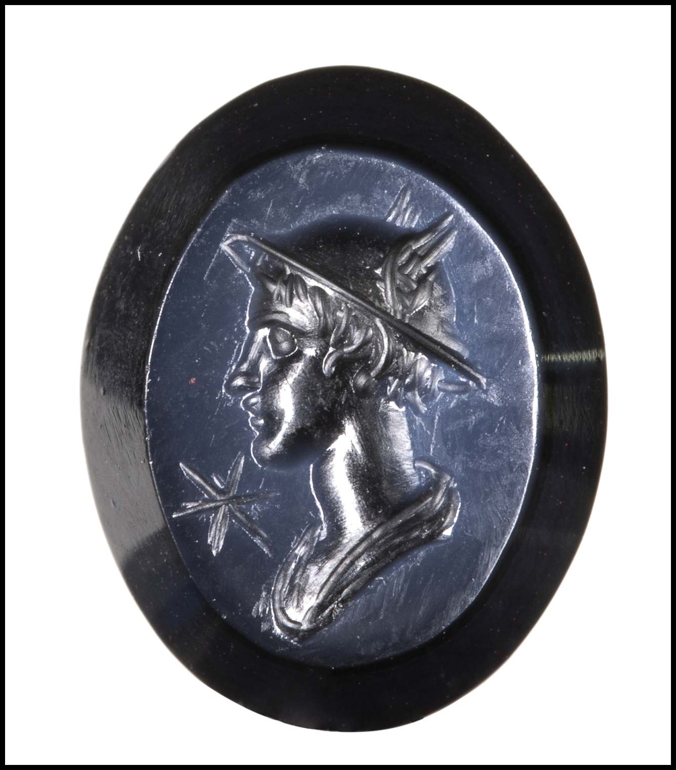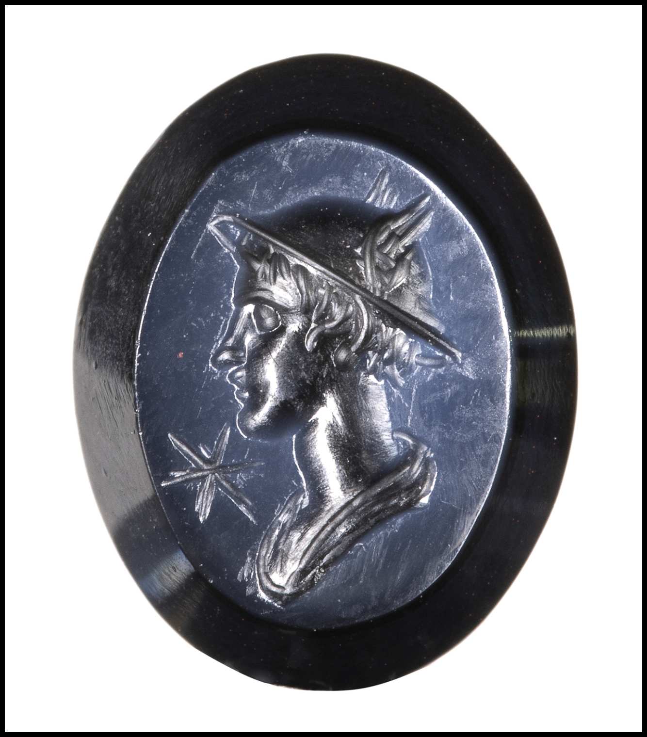 A ROMAN NICOLO INTAGLIO. BUST OF HERMES WITH A STAR.