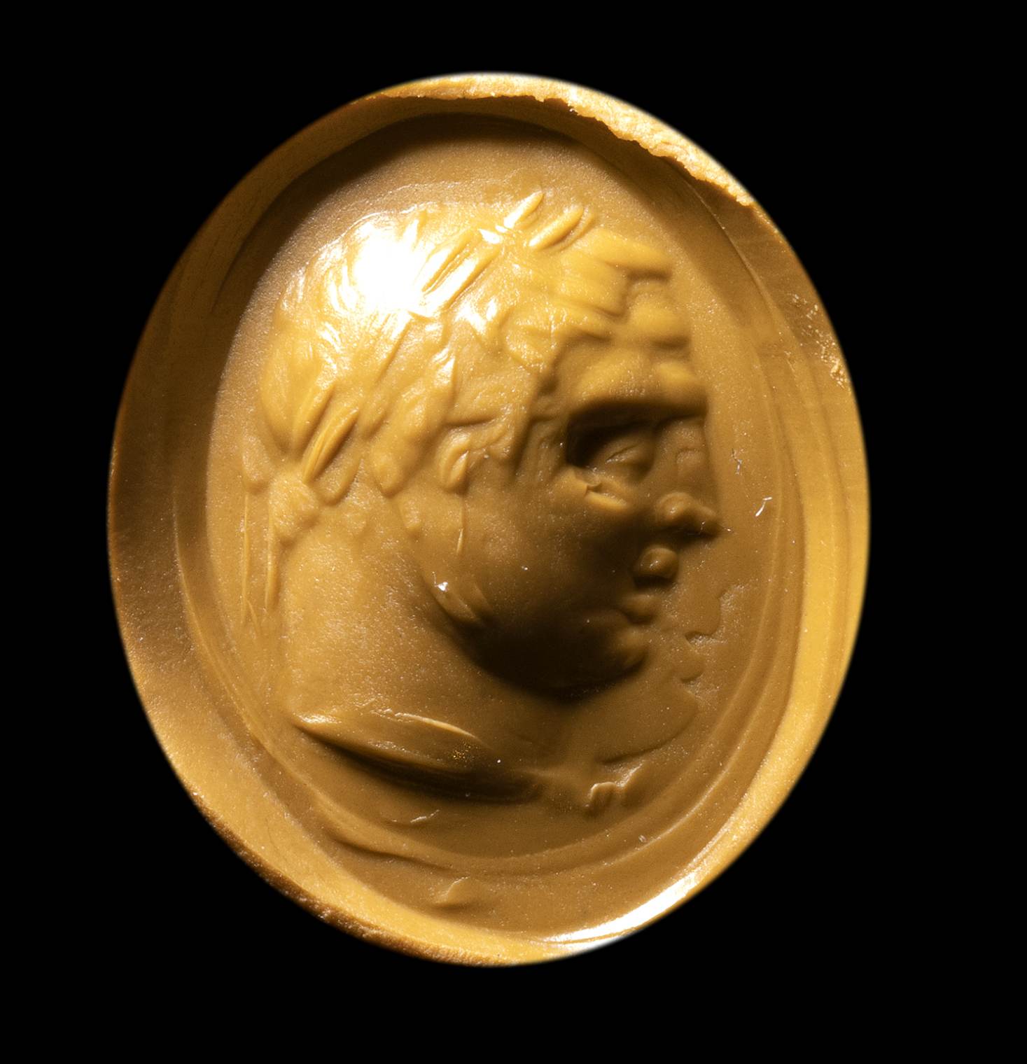 A ROMAN CHALCEDONY INTAGLIO HEAD OF YOUNG EMPEROR AS HERCULES.