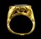 A LATE ROMAN NICOLO INTAGLIO SET IN A OPENWORK GOLD RING. MALE PORTRAIT WITH INITIALS.