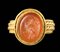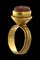 A LATE ROMAN GOLD RING SET WITH A CARNELIAN INTAGLIO. EAGLE HOLDING A LAUREL WREATH.